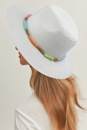 - This straw hat introduces a stunning multi color straw band style. Witness the perfect fusion of style and functionality as this accessory effortlessly complements your lifestyle.