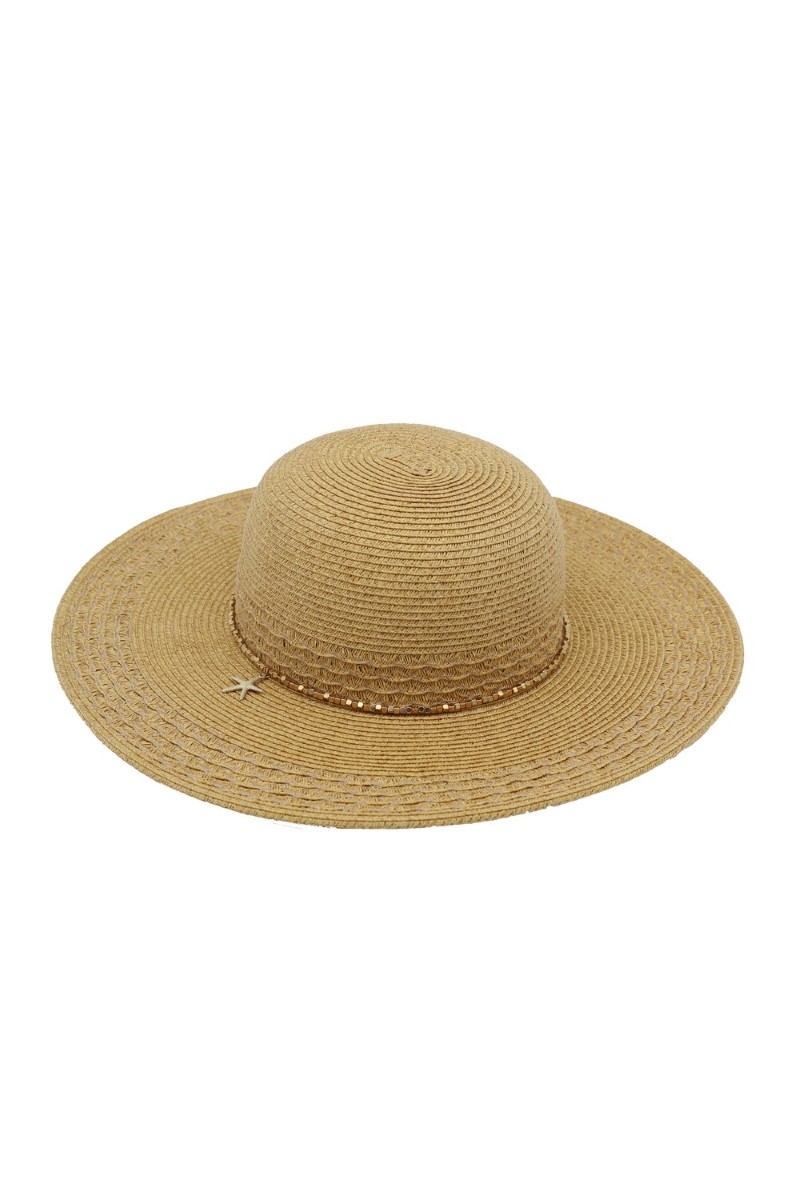 - This sun hat showcases a unique starfish charm wide brim straw style. Immerse yourself in the world of understated glamour as this sun hat effortlessly exudes timeless appeal.