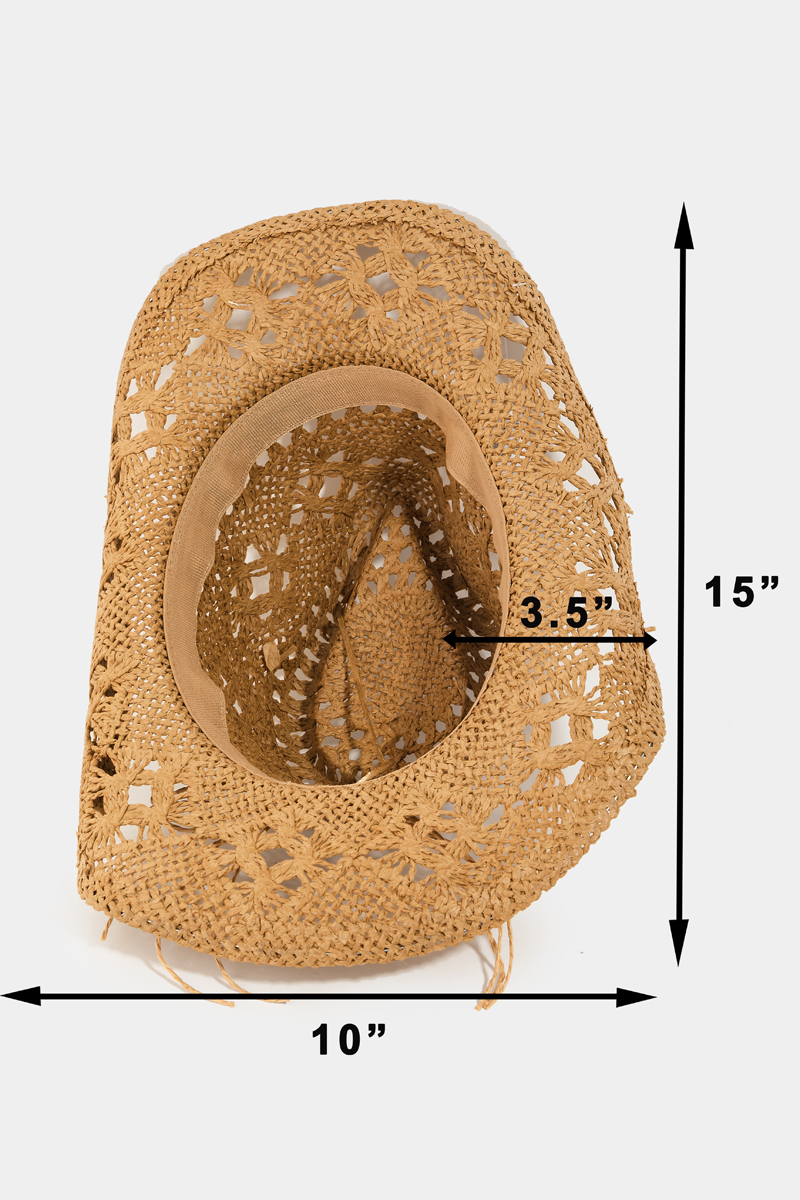 - This sun hat displays a fashionable straw braided cowboy style. Revel in the intricate design that effortlessly distinguishes this sun hat, making it a statement piece.