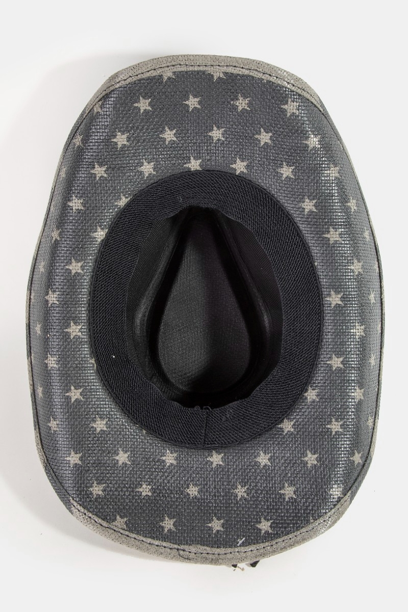 • This cowboy hat showcases a unique usa flag with studded stars style. Unveil a new dimension of sophistication as this cowboy hat effortlessly enhances the elegance of your ensemble.