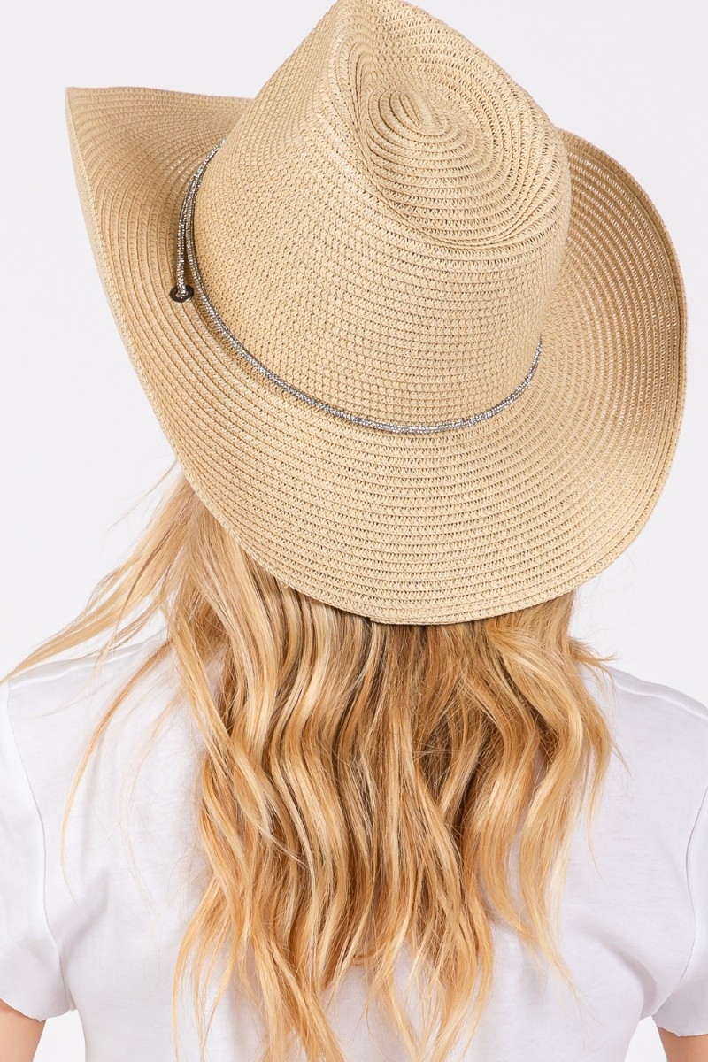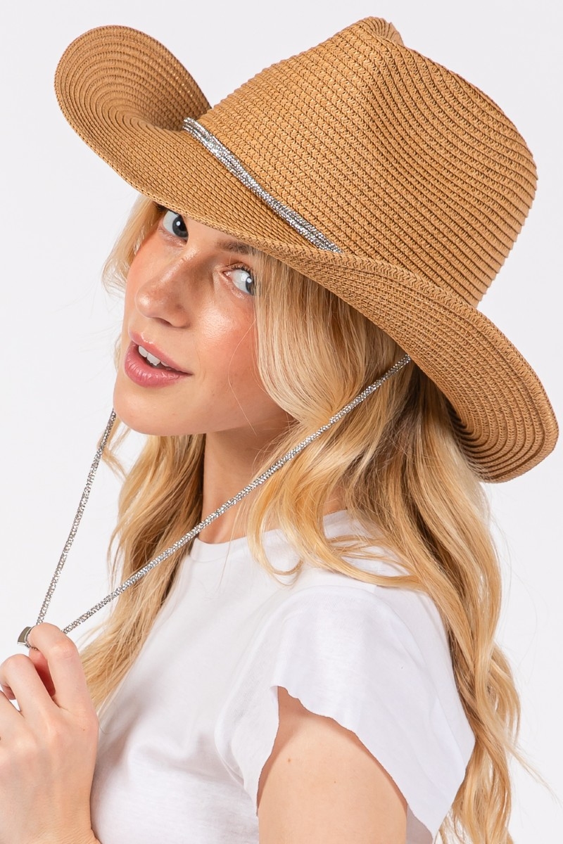 Crystal Rhinestone Strap Fedora Hat