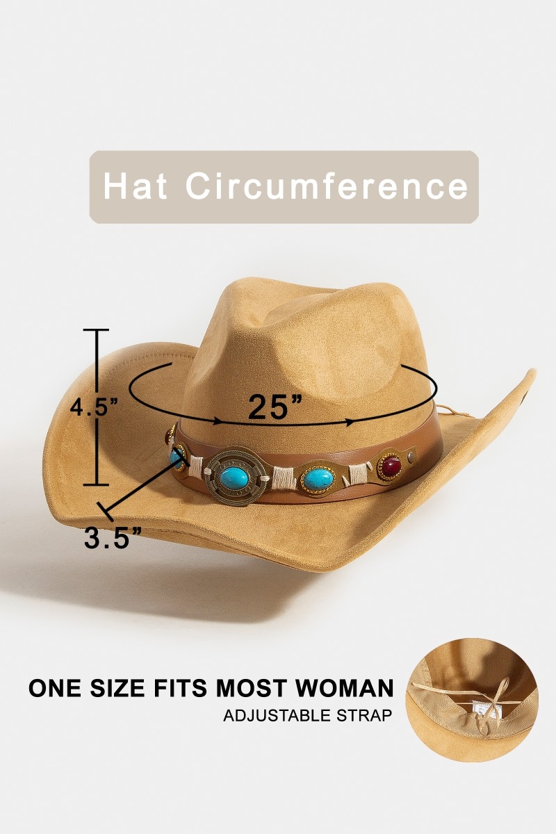 - This cowboy hat showcases a timeless western concho strap belt style. Savor the allure of detailed craftsmanship in this exquisite cowboy hat.