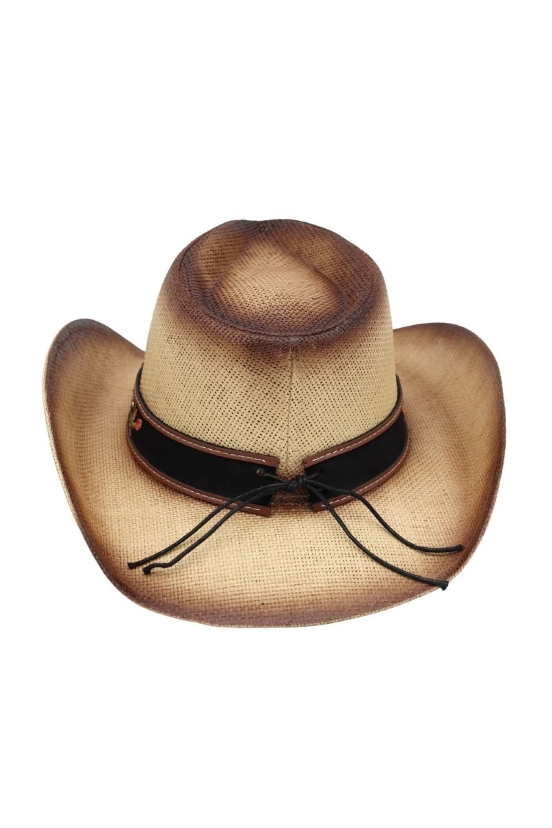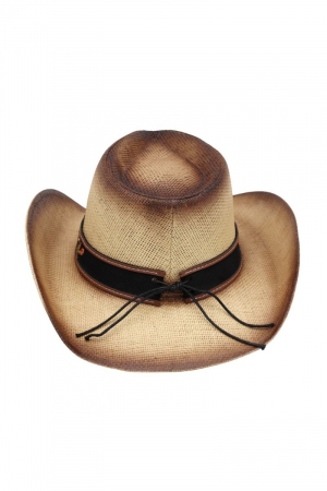 Western Longhorn Leather Strap Straw Cowboy Hat