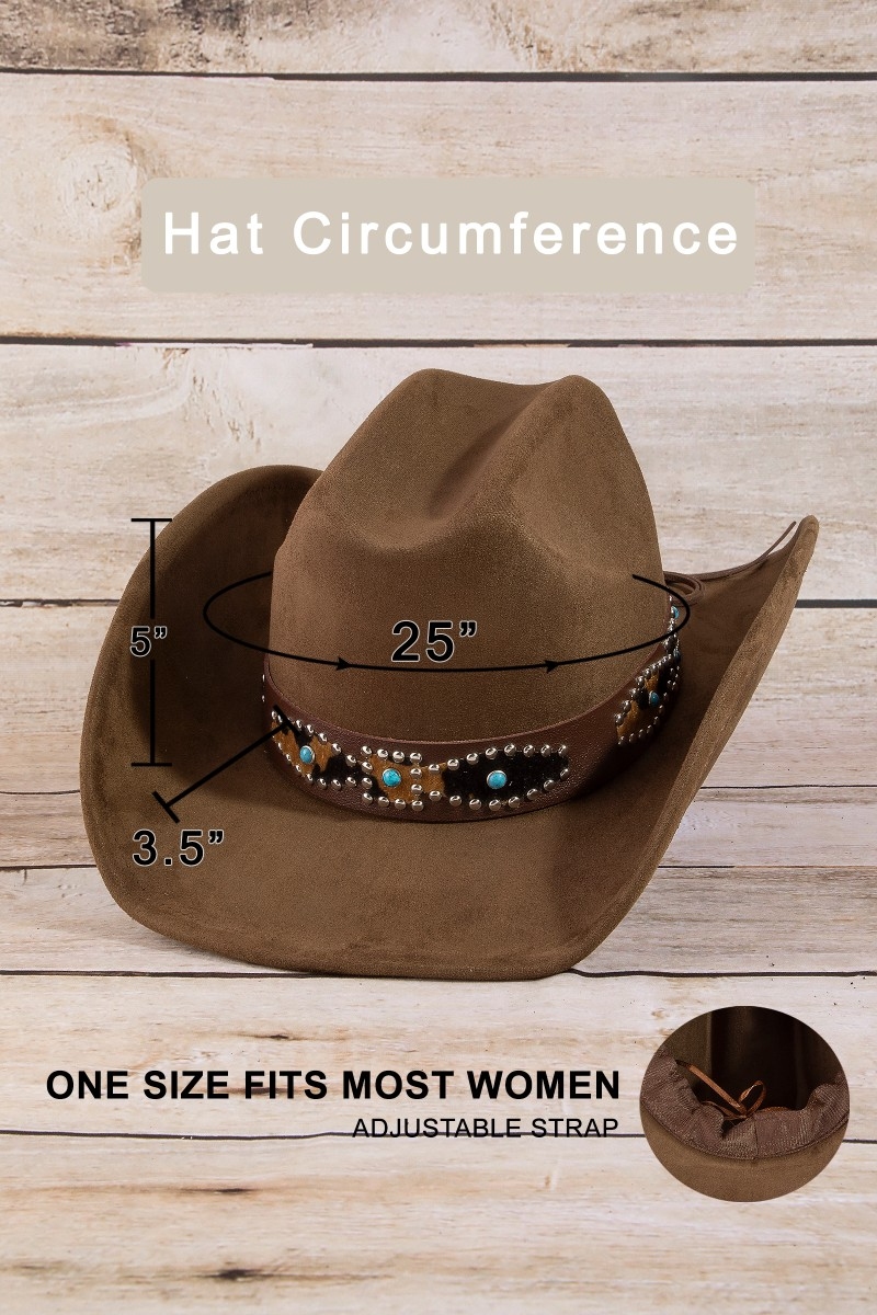 - This cowboy hat adds a modern western leopard embroidered strap style. Embark on a journey of sartorial refinement as this cowboy hat effortlessly complements your fashion sense.