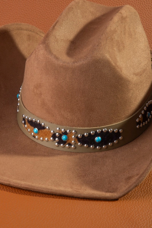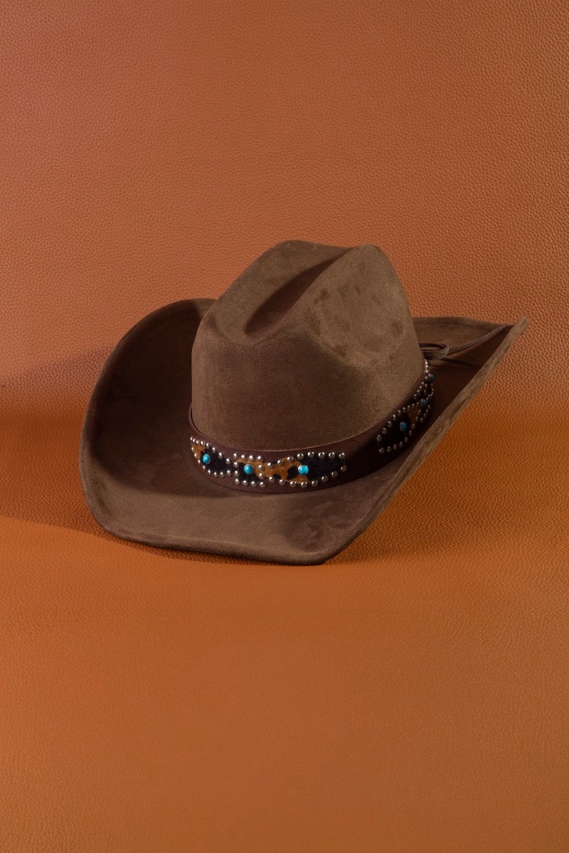 - This cowboy hat brings a unique western leopard embroidered strap style. Celebrate individual style with this versatile, eye-catching addition.