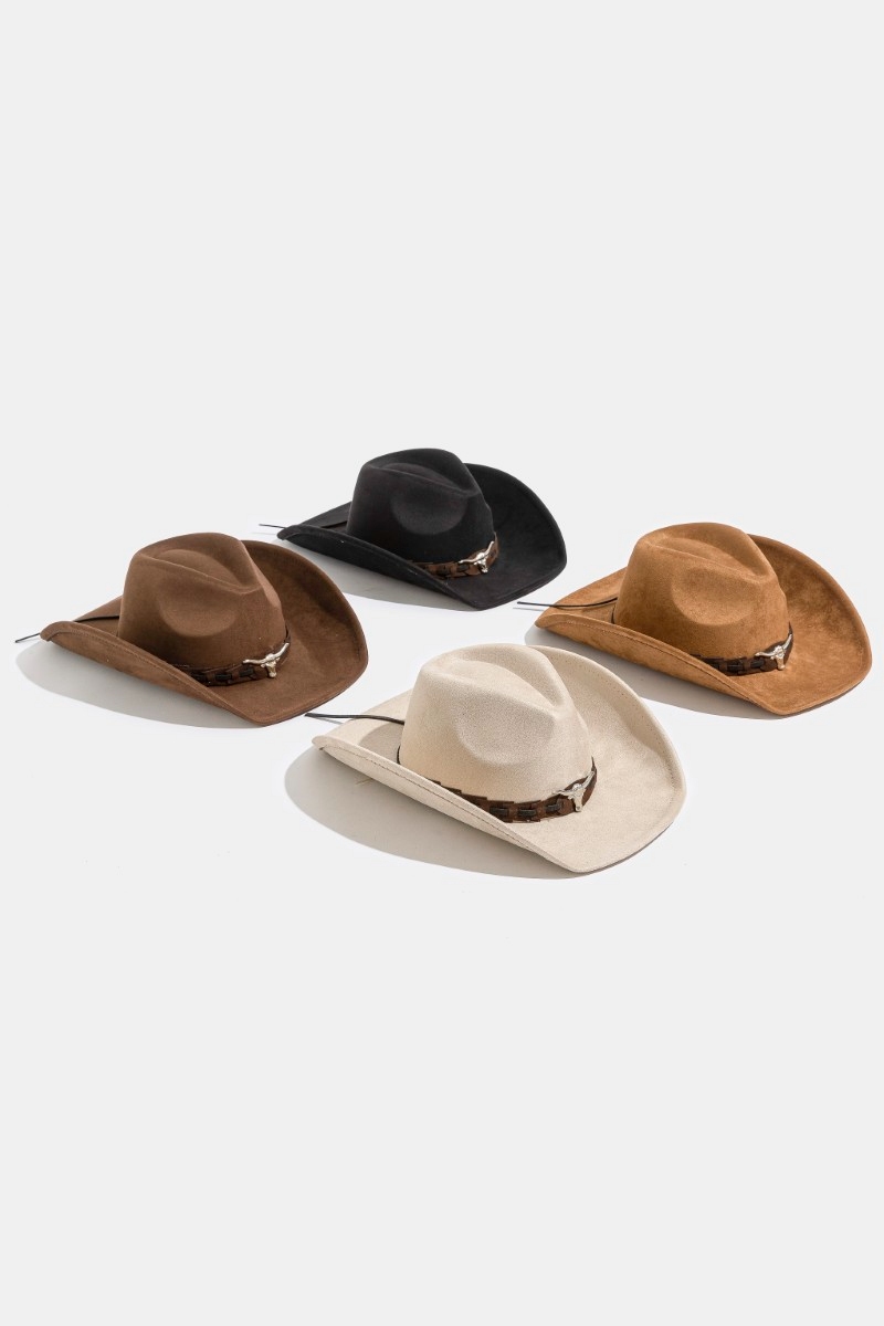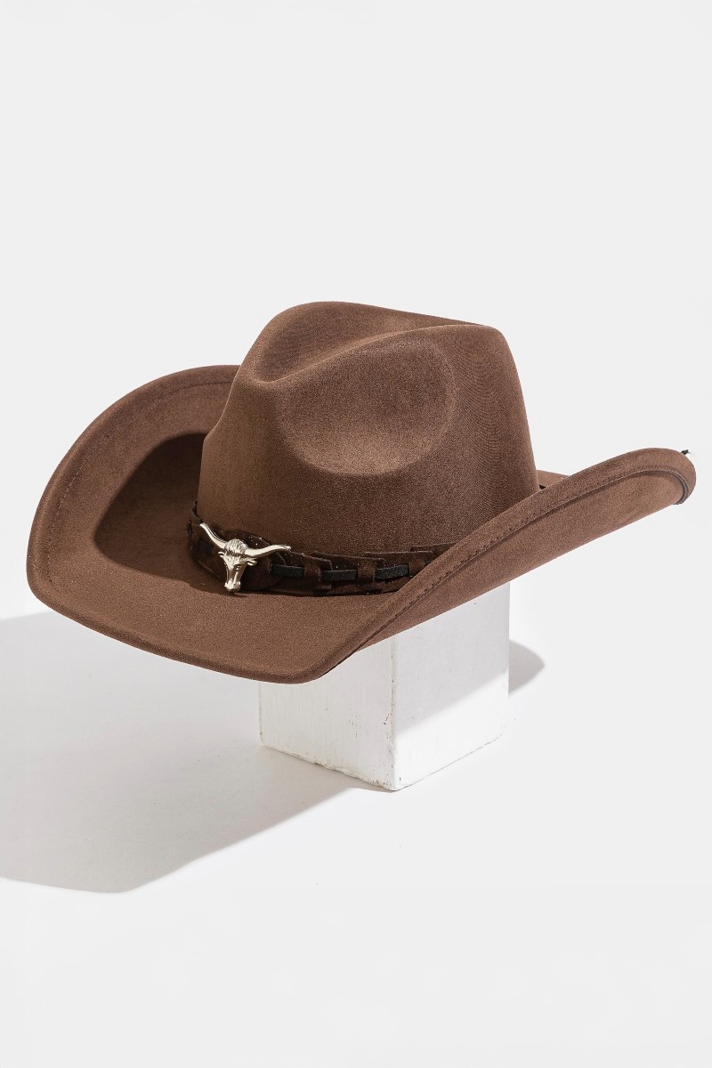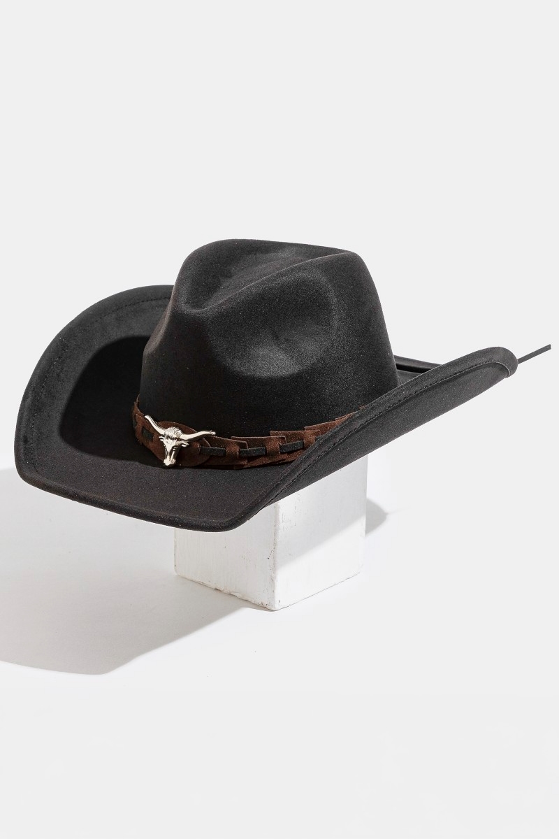 - This cowboy hat features a fashionable western long horn strap style. Witness the transformative power of accessories as this piece effortlessly redefines your fashion narrative.
