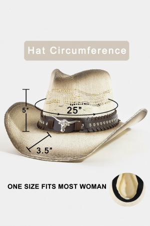 - This cowboy hat showcases a timeless western long horn strap straw style. Savor the allure of detailed craftsmanship in this exquisite cowboy hat.