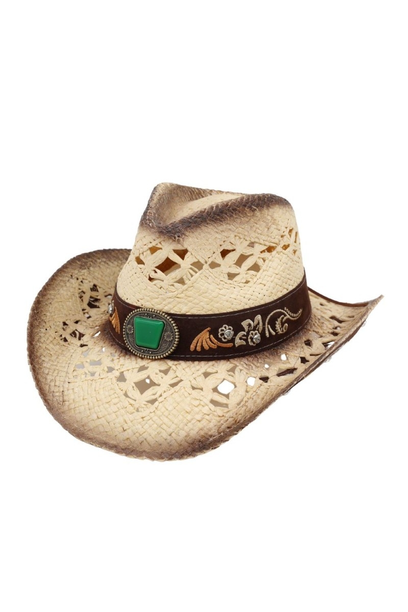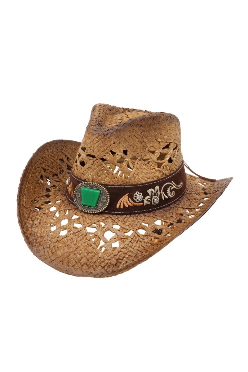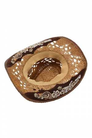 - This cowboy hat brings a luxurious western theme embroidered strap straw style. Elevate your ensemble with this cowboy hat that effortlessly captures the essence of refined fashion.