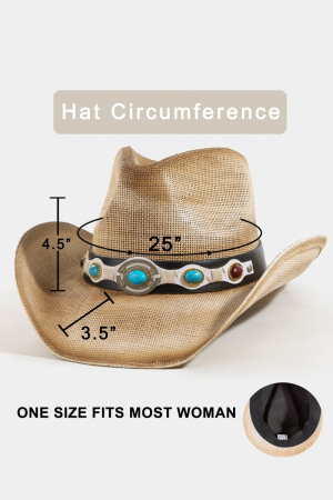 - This cowboy hat introduces a unique western turquoise stone strap straw style. Unveil modern elegance with this subtly intricate cowboy hat.
