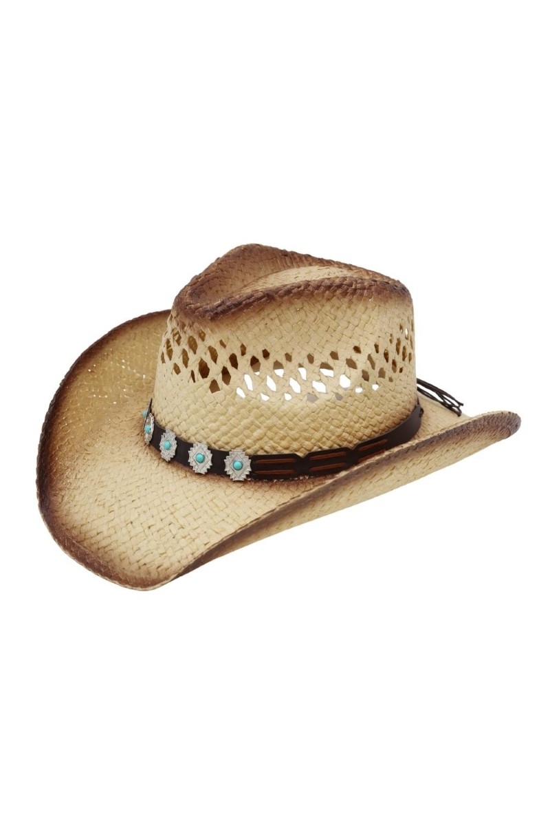 • This cowboy hat introduces a unique western two tone concho strap style. Elevate your ensemble with this cowboy hat that effortlessly captures the essence of refined fashion.