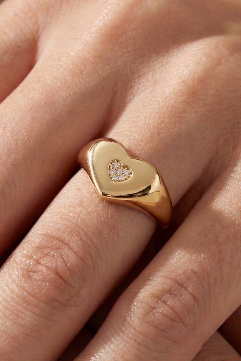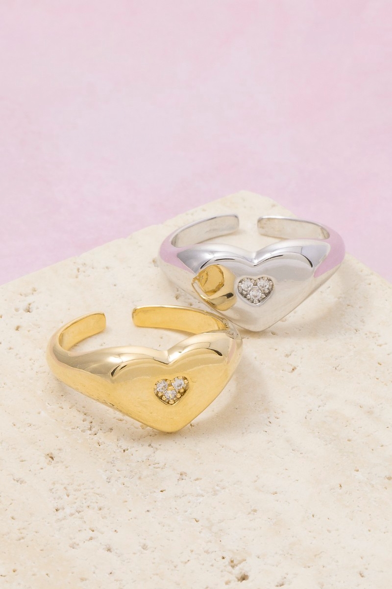 - This ring features a fashionable 18k gold dipped cubic zirconia heart style. Indulge in the artistry of accessorizing with this unique piece.
