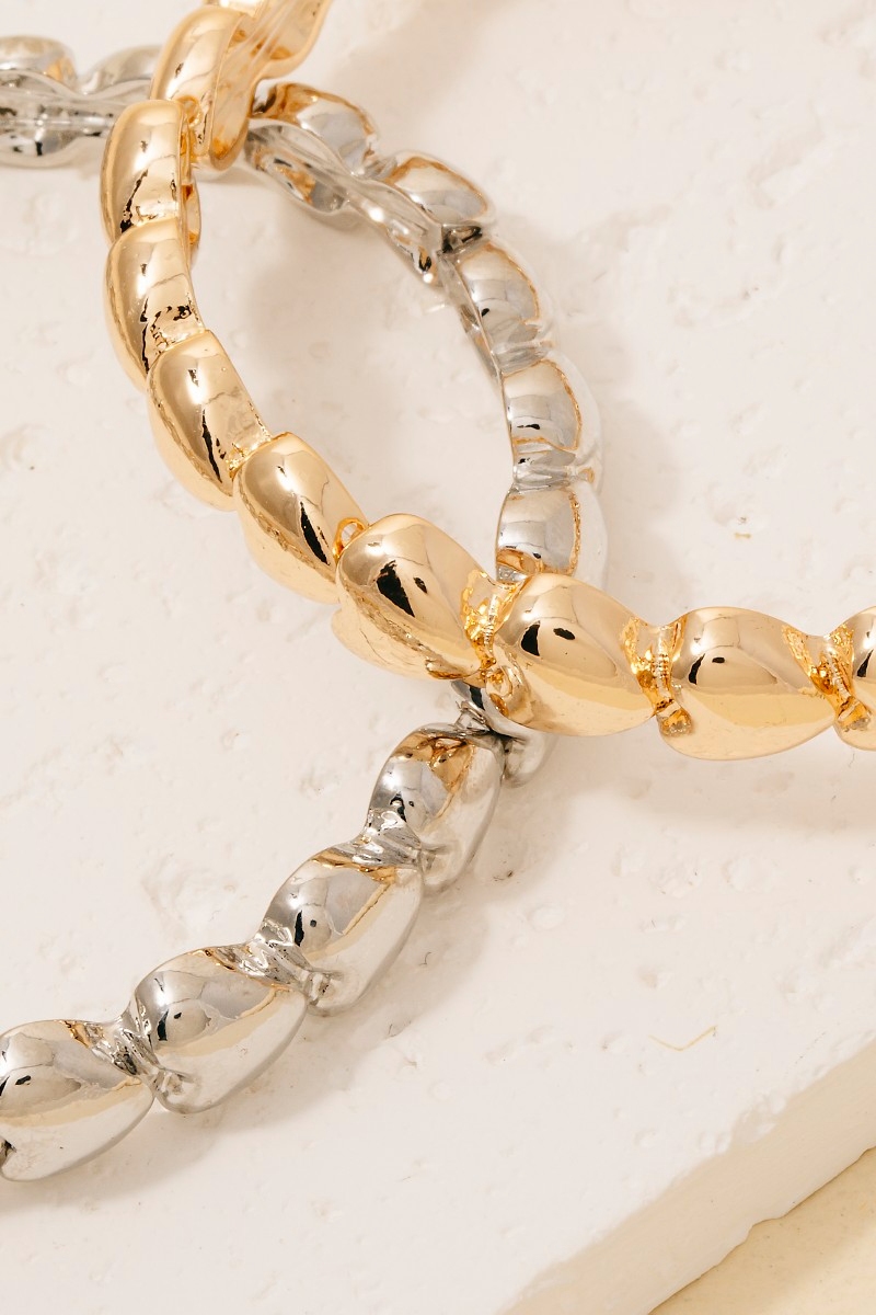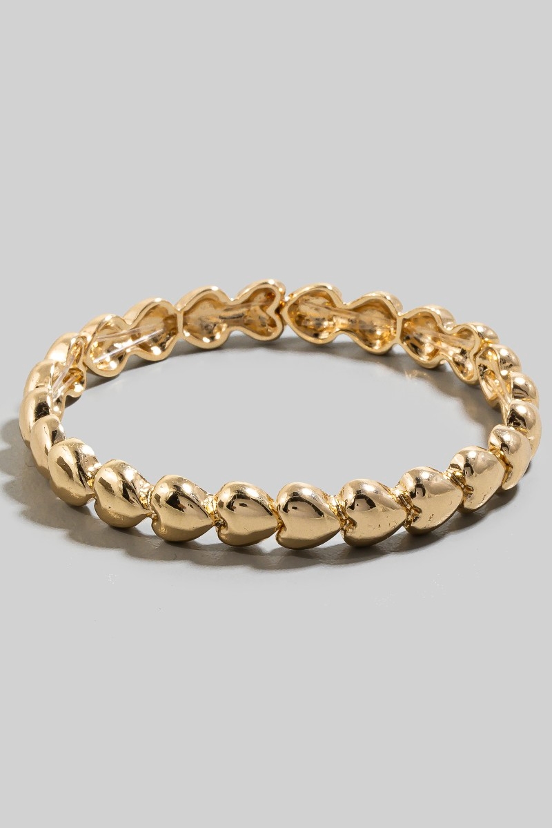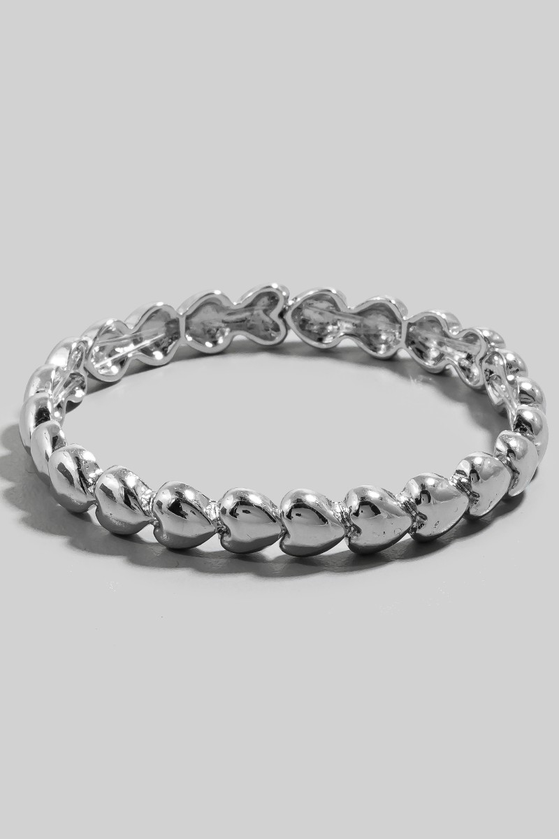 - This bangle bracelet introduces a unique metallic hearts elastic bracelet style. Witness the perfect fusion of style and functionality as this bangle bracelet effortlessly complements your lifestyle.