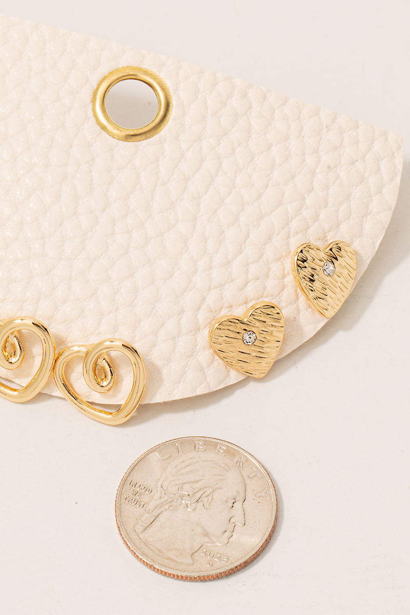 • This pair of stud earrings displays a fashionable 3pc mixed heart set style. Immerse yourself in the details of design, as this pair of stud earrings effortlessly becomes a conversation starter.