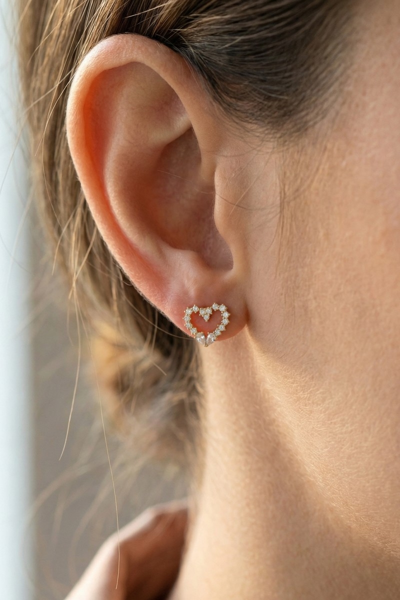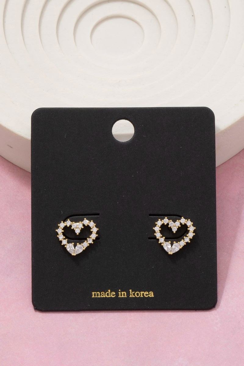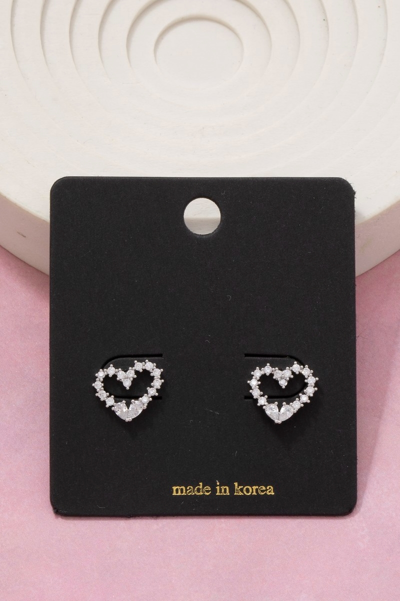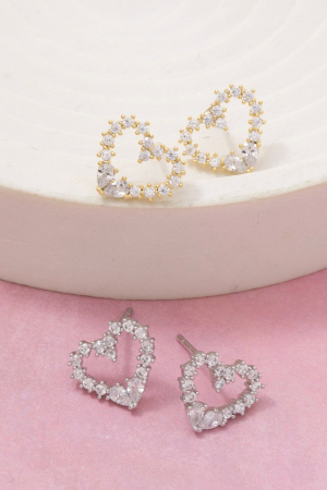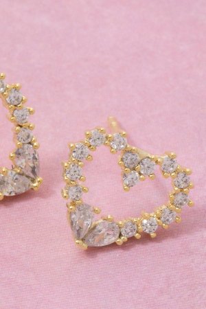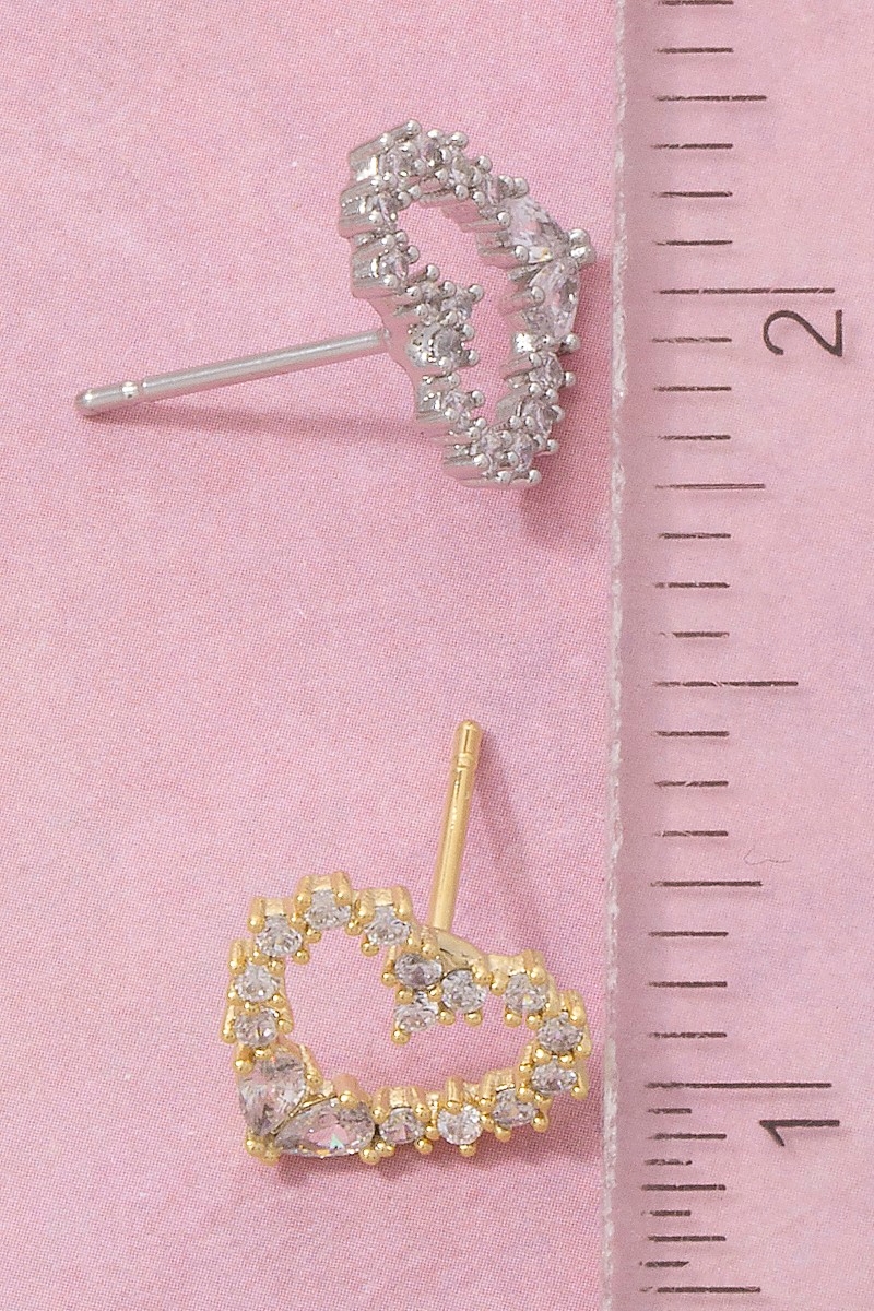 - This pair of stud earrings introduces a stunning cz studded heart style. Experience the joy of accessorizing with this piece that effortlessly combines versatility and charm.
