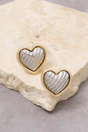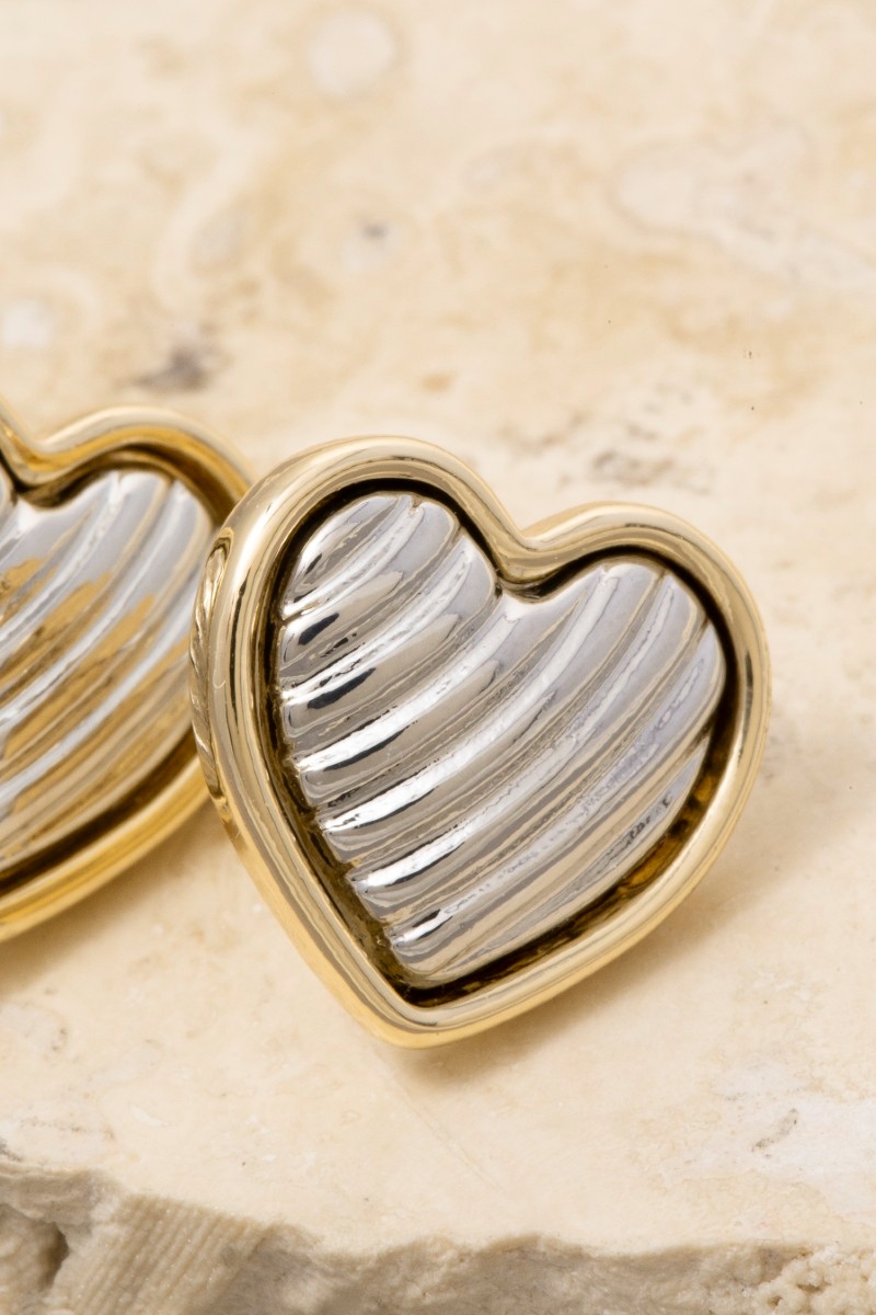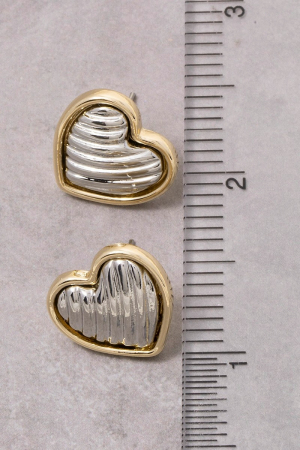 - This pair of stud earrings adds a modern gold dipped textured heart style. Immerse yourself in the world of understated glamour as this pair of stud earrings effortlessly exudes timeless appeal.