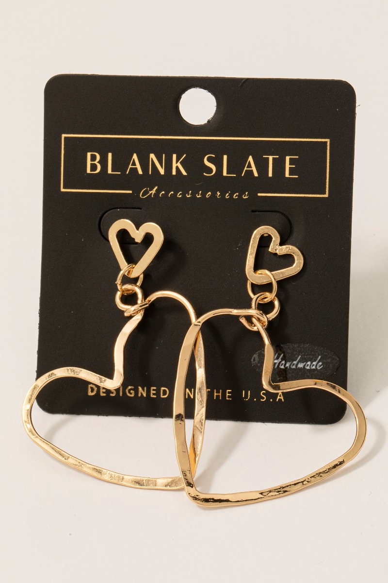 • This pair of earrings showcases a unique handmade heart dangle cutout style. Delight in the intricate details that make this pair of earrings an essential element in expressing your fashion identity.