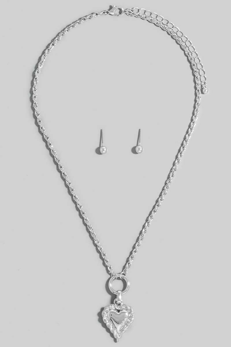 - This chain necklace displays a fashionable heart pendant rope set style. Experience refined sophistication with this understated yet stylish piece.