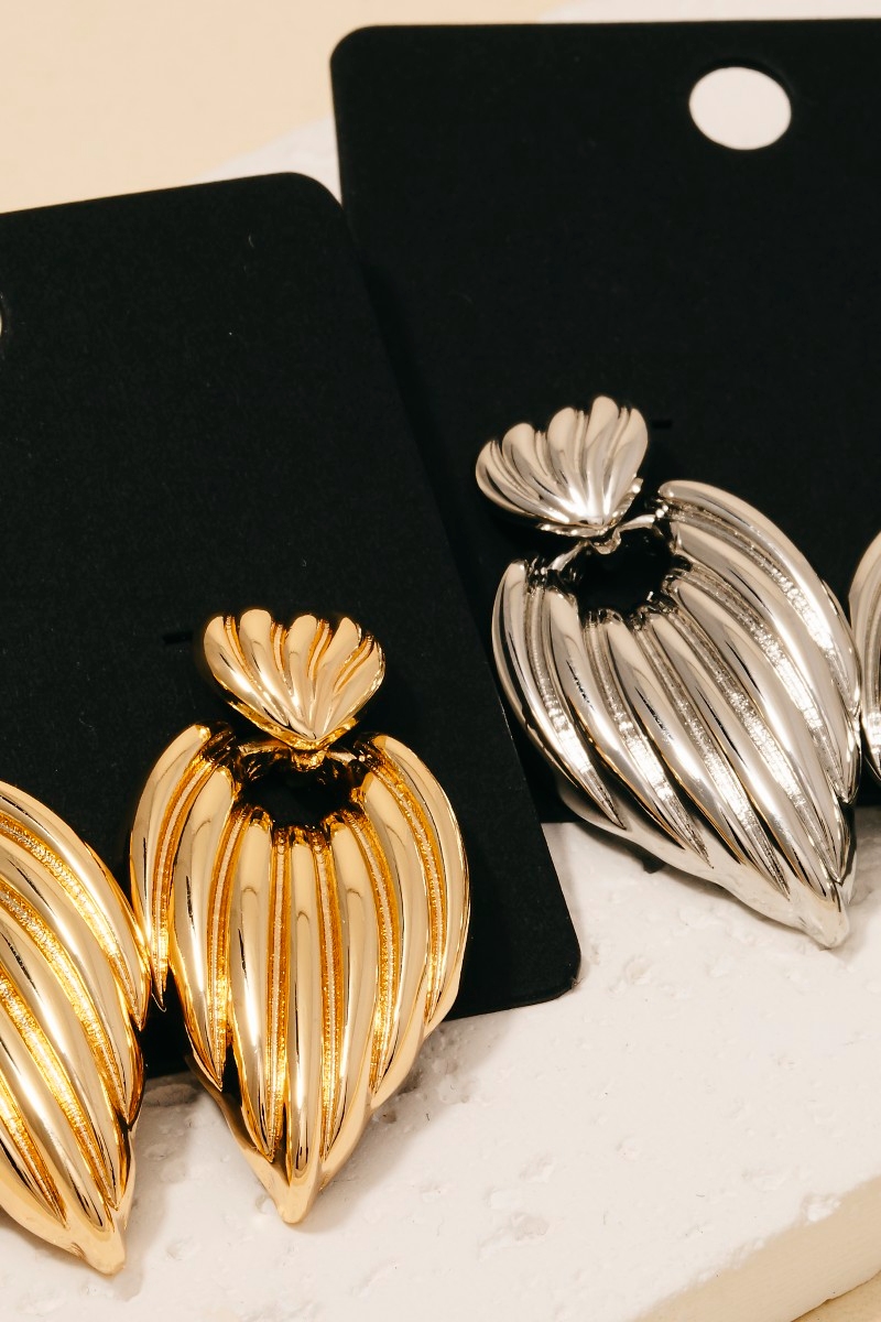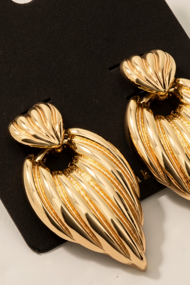 Gold Dipped Ridged Heart Shield Stud Earrings
