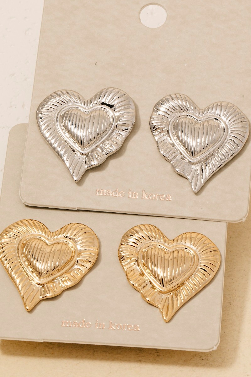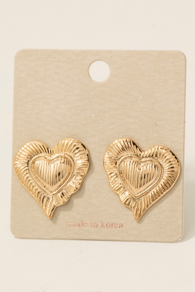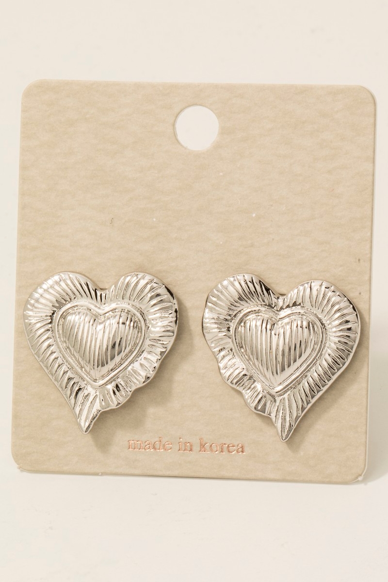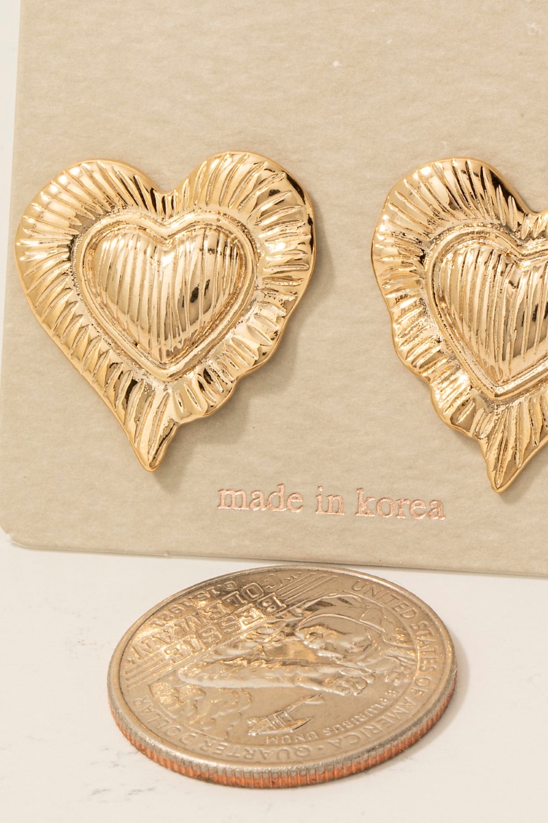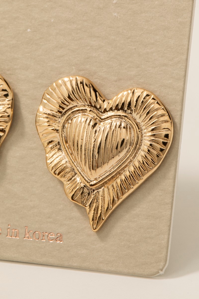 - This pair of stud earrings displays a vibrant melting textured hearts style. Unveil modern elegance with this subtly intricate pair of stud earrings.