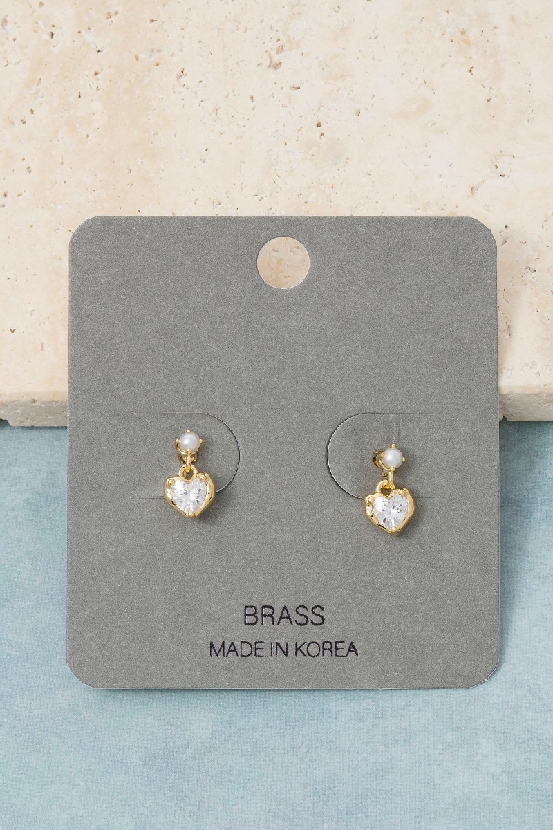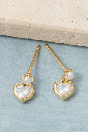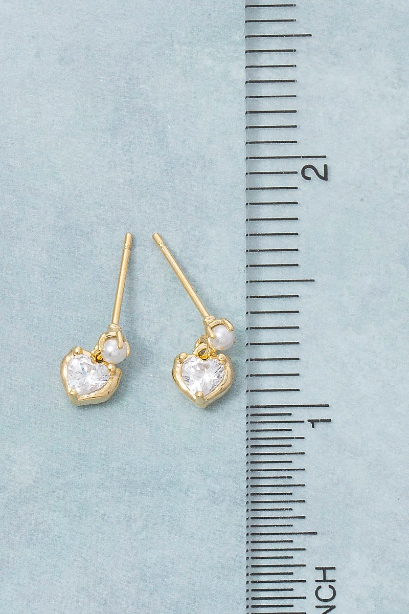 - This pair of drop earrings showcases a timeless mini cubic zirconia heart style. Experience a burst of creativity in accessorizing as this piece effortlessly sets the tone for your unique style.