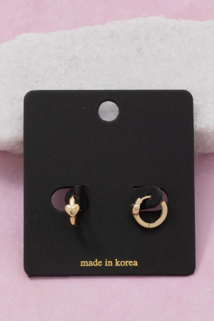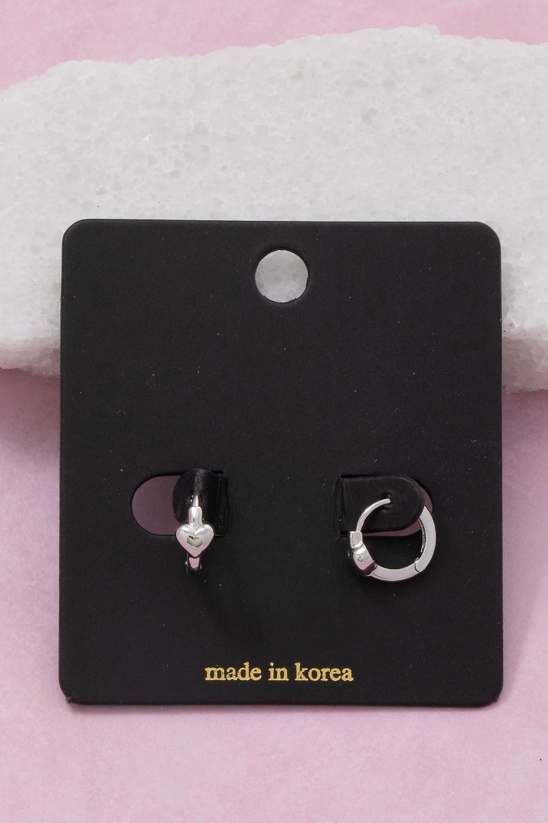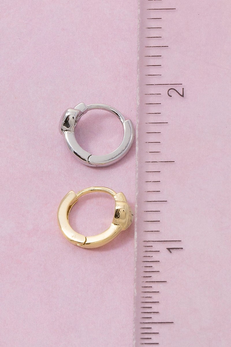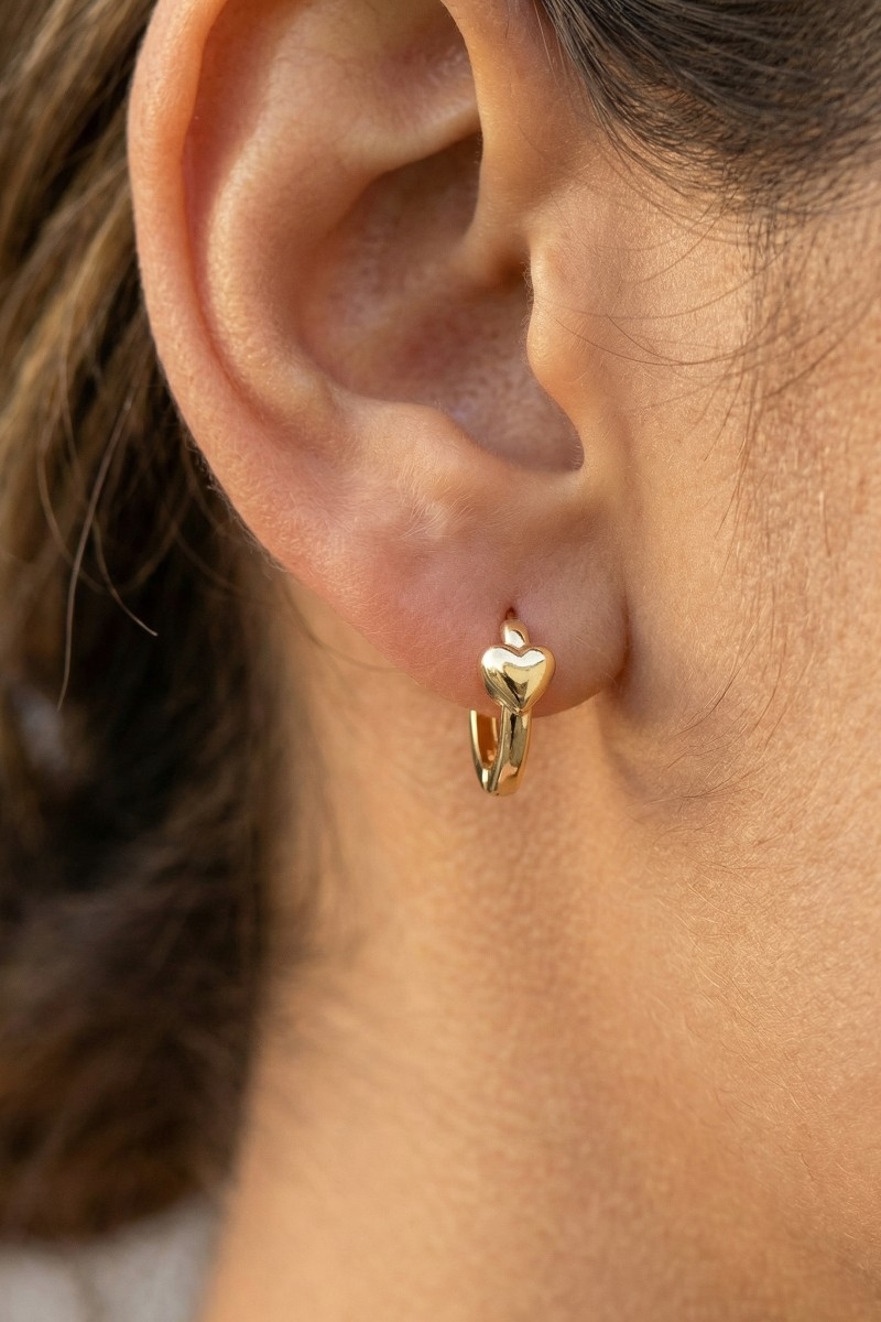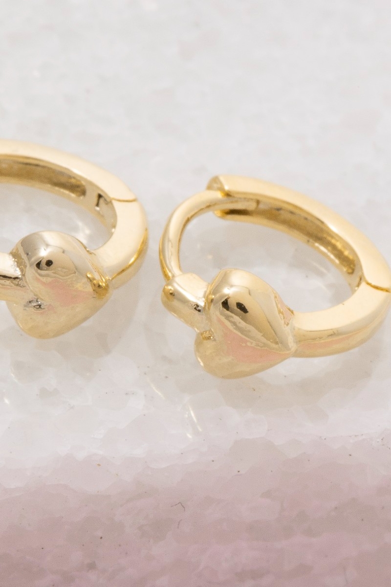 - This pair of hoop earrings displays a fashionable mini heart hinge style. Step into a world of refined taste as this pair of hoop earrings effortlessly refines the details of your outfit.
