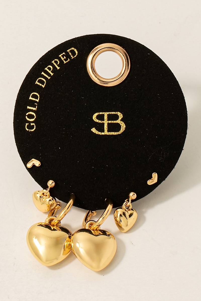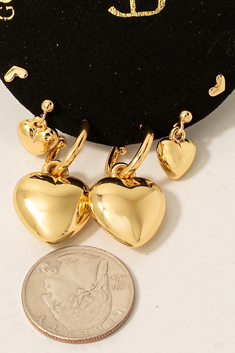 - This pair of earrings features a fashionable gold dipped mixed heart charms and studs set style. Unveil modern elegance with this subtly intricate pair of earrings.
