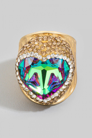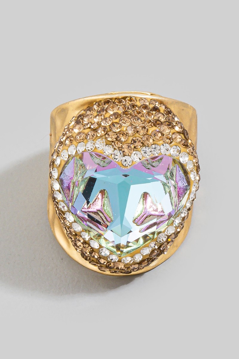 Faceted Crystal Heart Pave Statement Ring