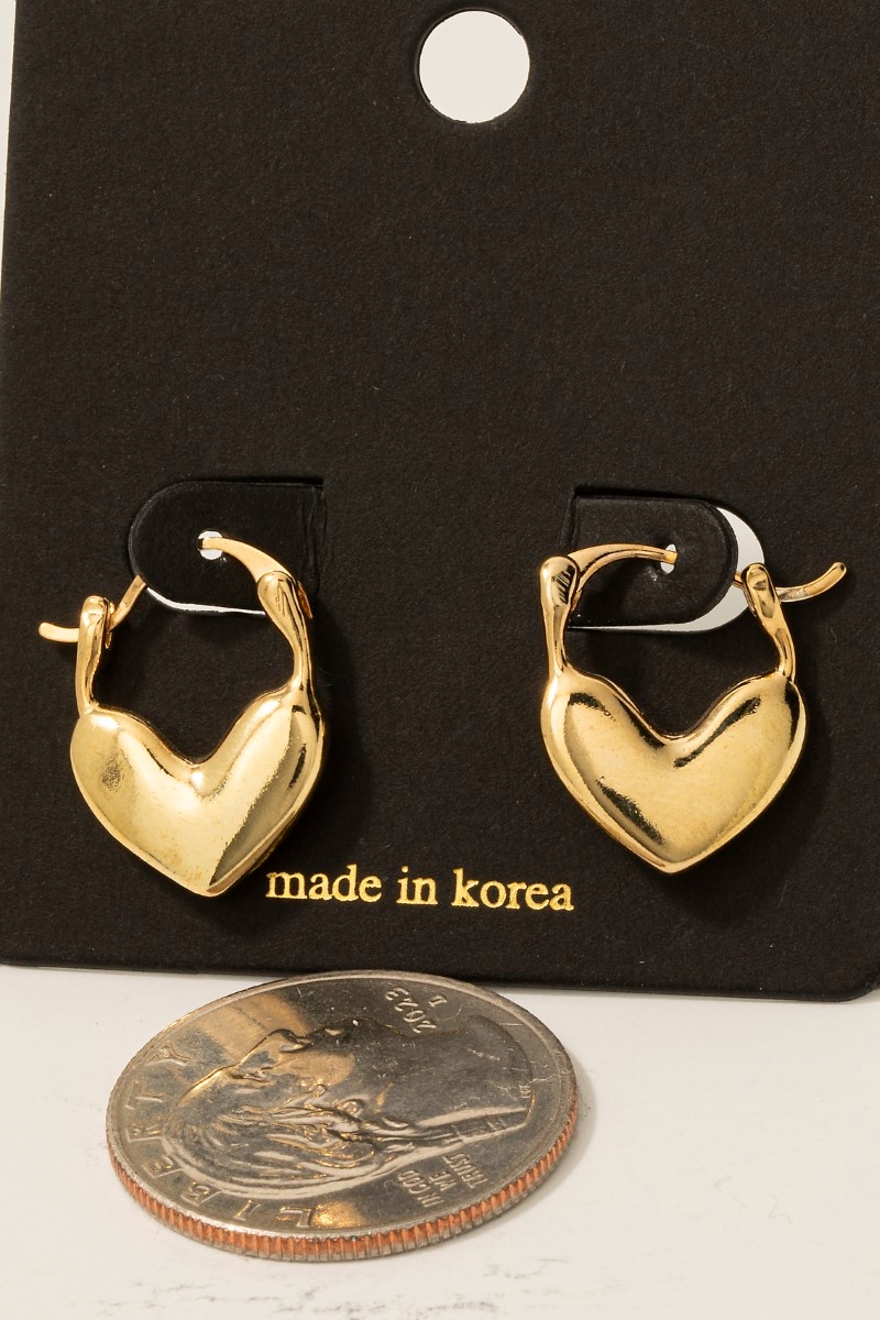 • This pair of hoop earrings features a fashionable flat heart latch style. Redefine your look effortlessly with this standout, on-trend piece.