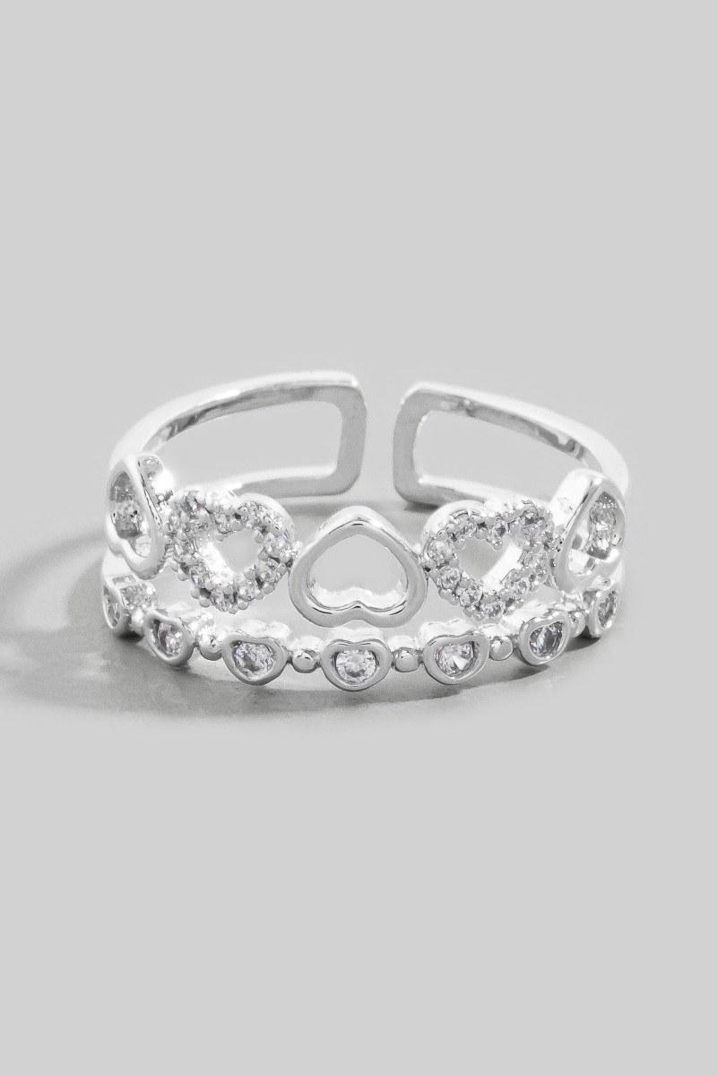 • This ring brings a luxurious gold dipped cubic zirconia double row heart style. Embark on a journey of sartorial refinement as this ring effortlessly complements your fashion sense.
