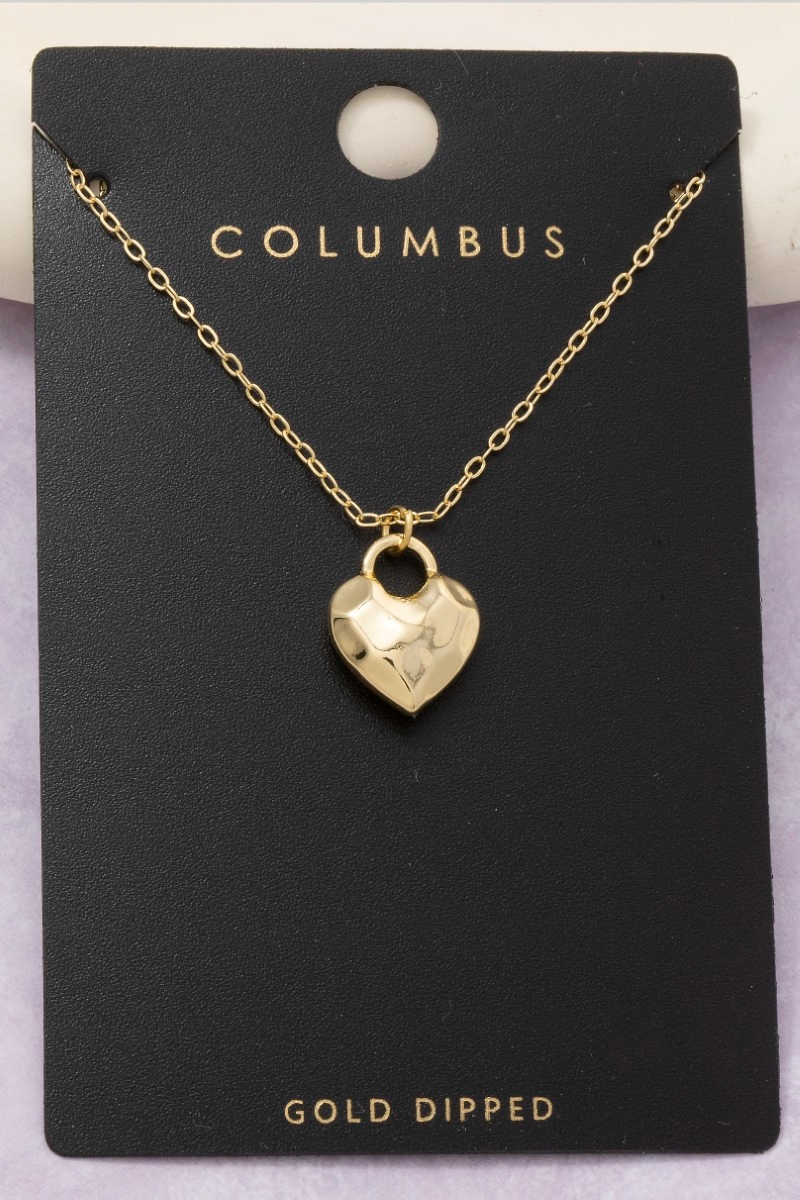 - This pendant necklace features a fashionable gold dipped hammered heart style. Delight in the intricate details that make this pendant necklace an essential element in expressing your fashion identity.