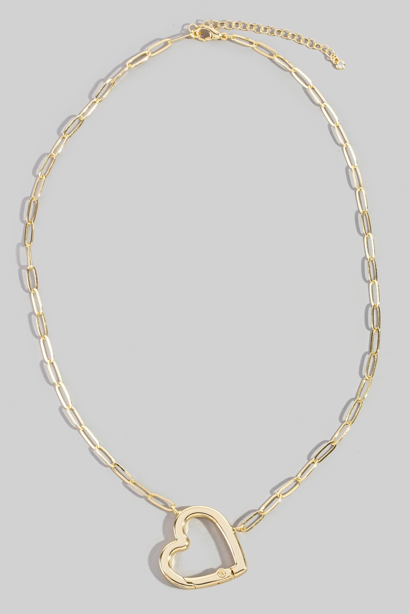 - This pendant necklace brings a luxurious gold dipped heart carabiner style. Immerse yourself in the details of design, as this pendant necklace effortlessly becomes a conversation starter.