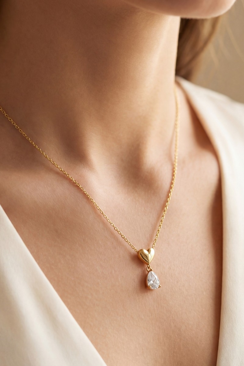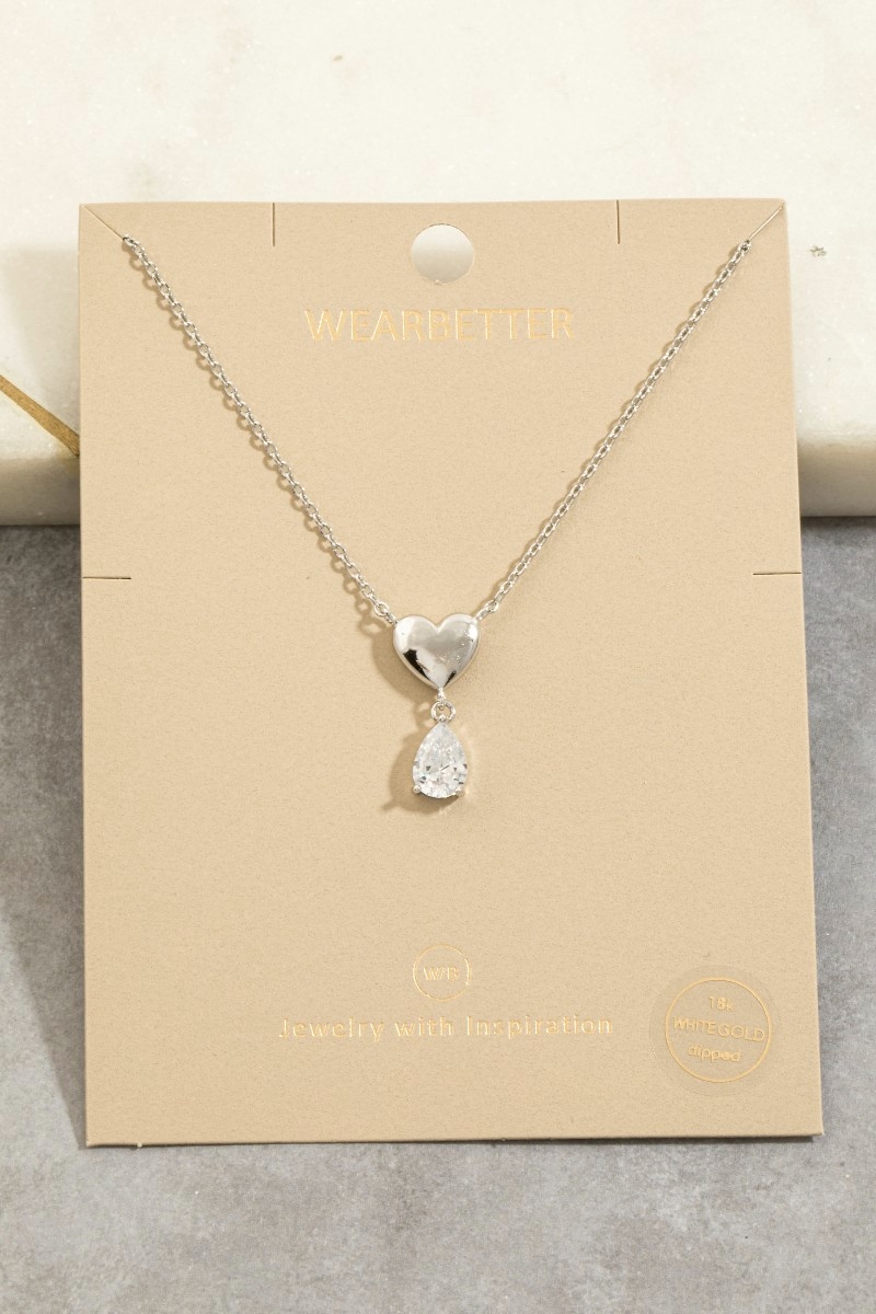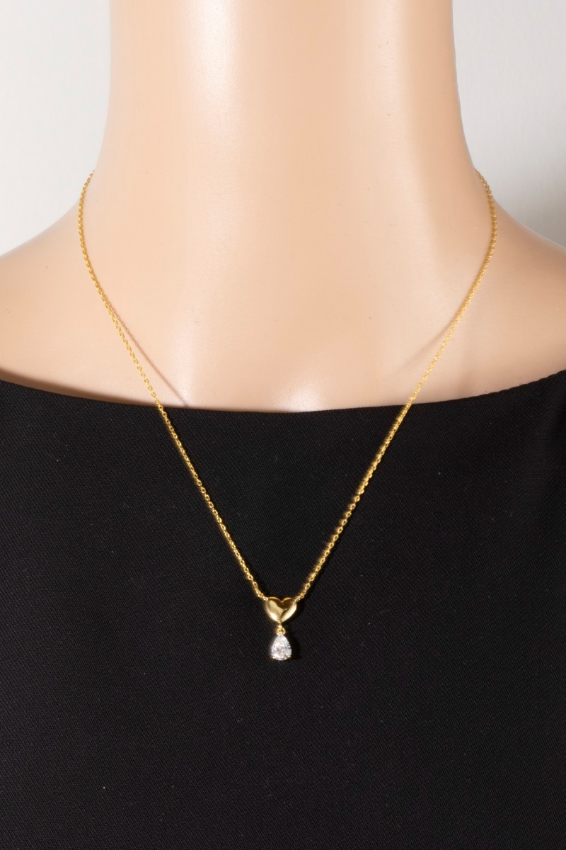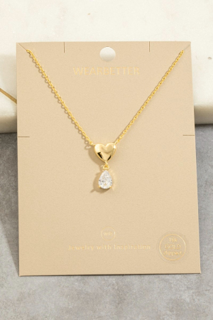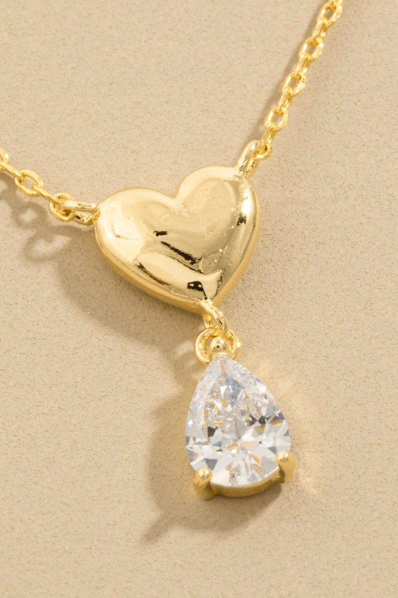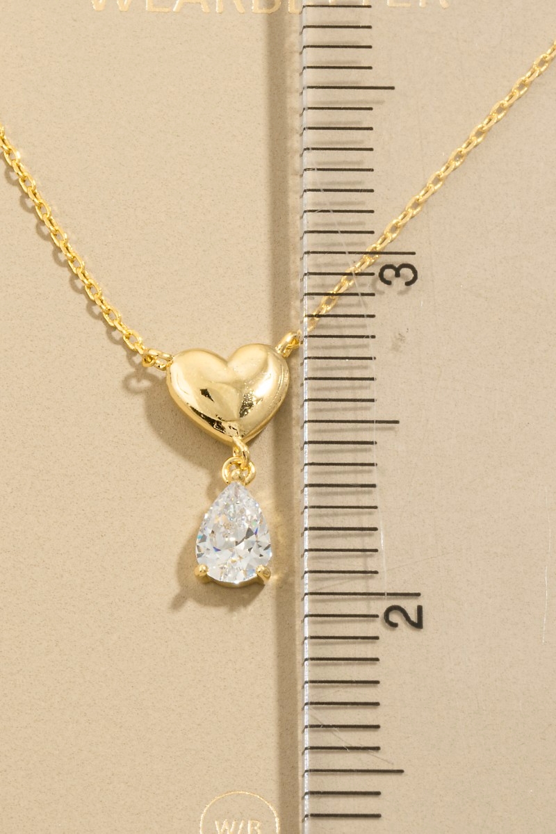 • This pendant necklace showcases a timeless gold dipped heart and cubic zirconia tear style. Celebrate individual style with this versatile, eye-catching addition.
