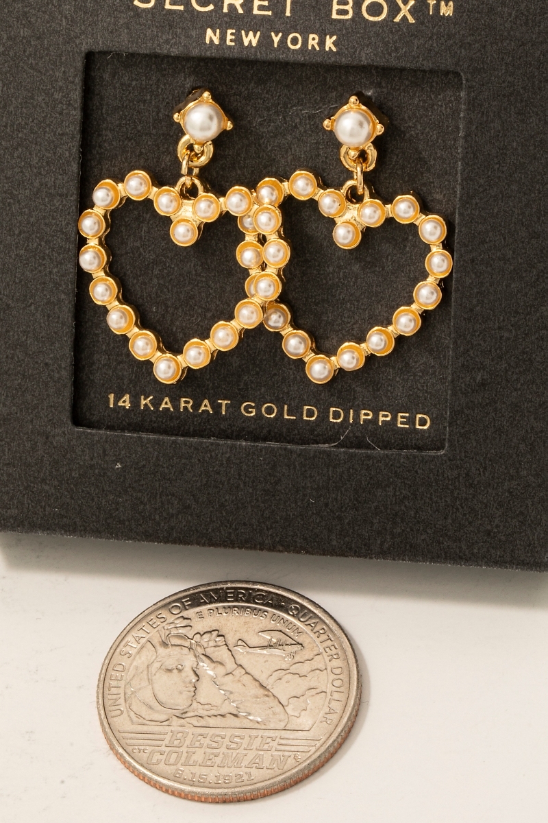 • This pair of dangle earrings introduces a stunning gold dipped pearl studded heart style. Delight in the intricate details that make this pair of dangle earrings an essential element in expressing your fashion identity.