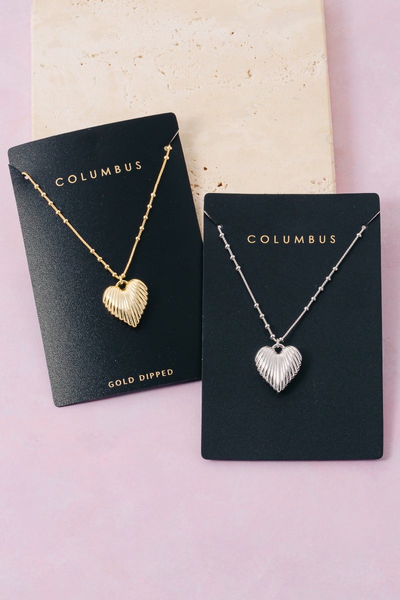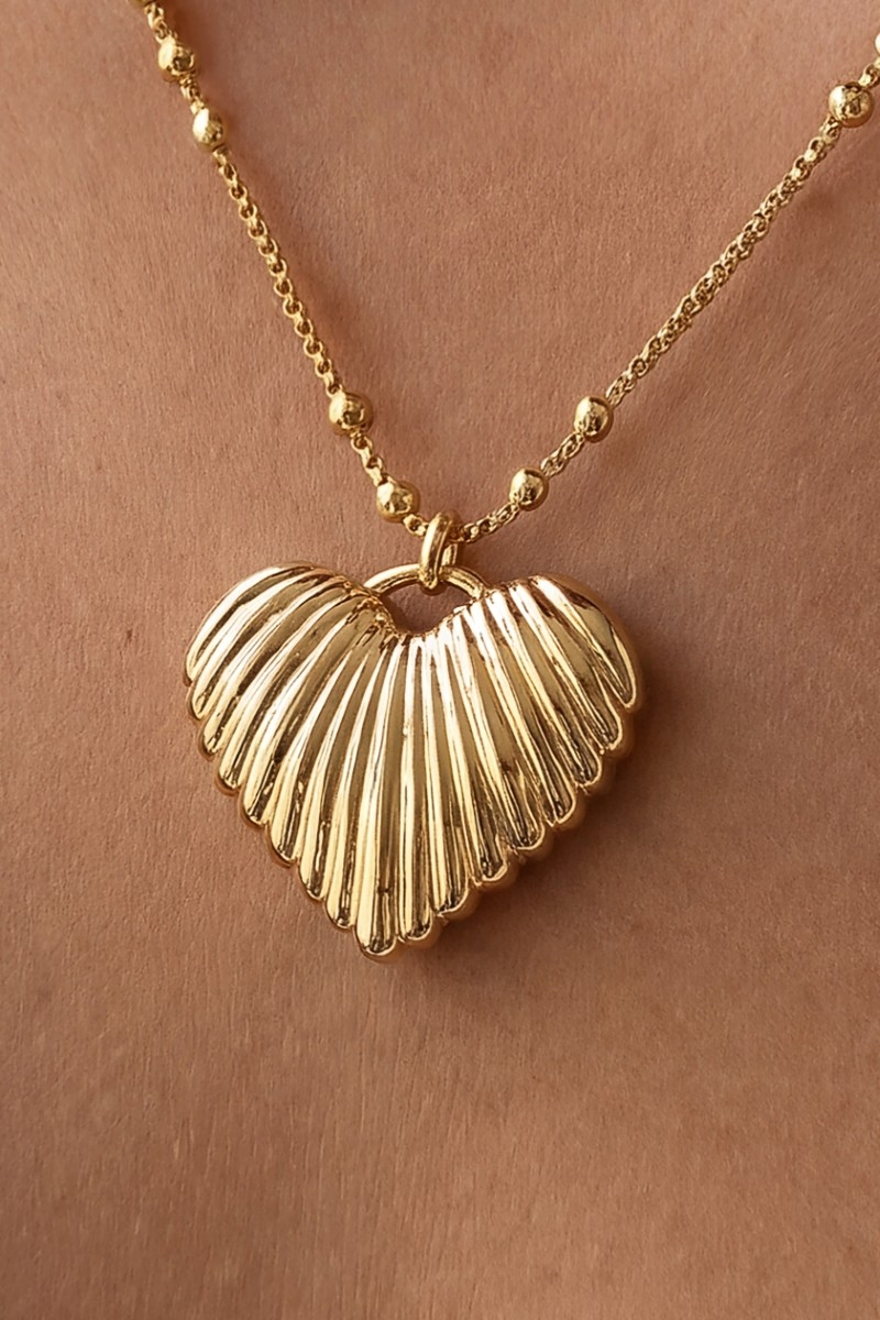 - This pendant necklace introduces a stunning gold dipped ridged heart style. Embark on a journey of sartorial refinement as this pendant necklace effortlessly complements your fashion sense.