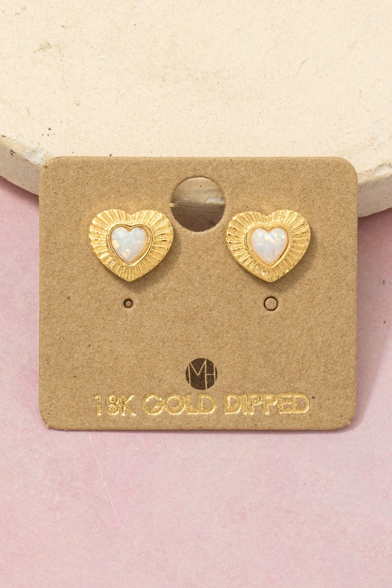 - This pair of stud earrings showcases a timeless gold dipped vintage heart opal style. Delight in the nuanced details that make this pair of stud earrings a testament to fine design and impeccable taste.