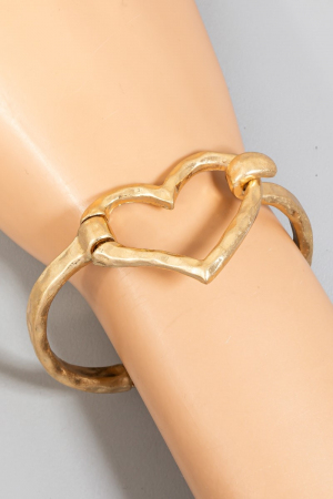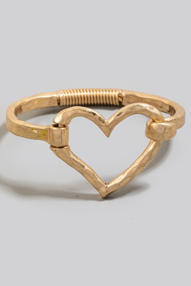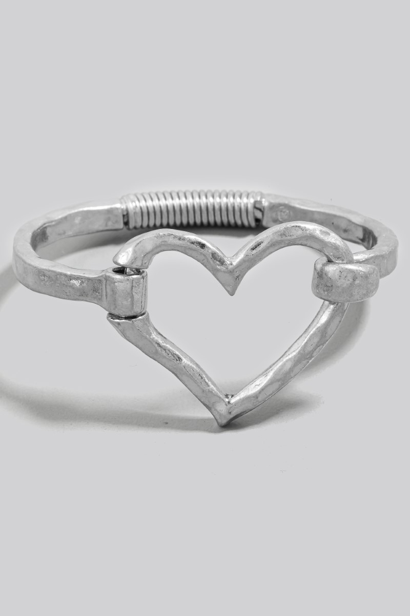 - This bangle bracelet brings a stunning hammered heart coil spring hook style. Experience a burst of creativity in accessorizing as this piece effortlessly sets the tone for your unique style.