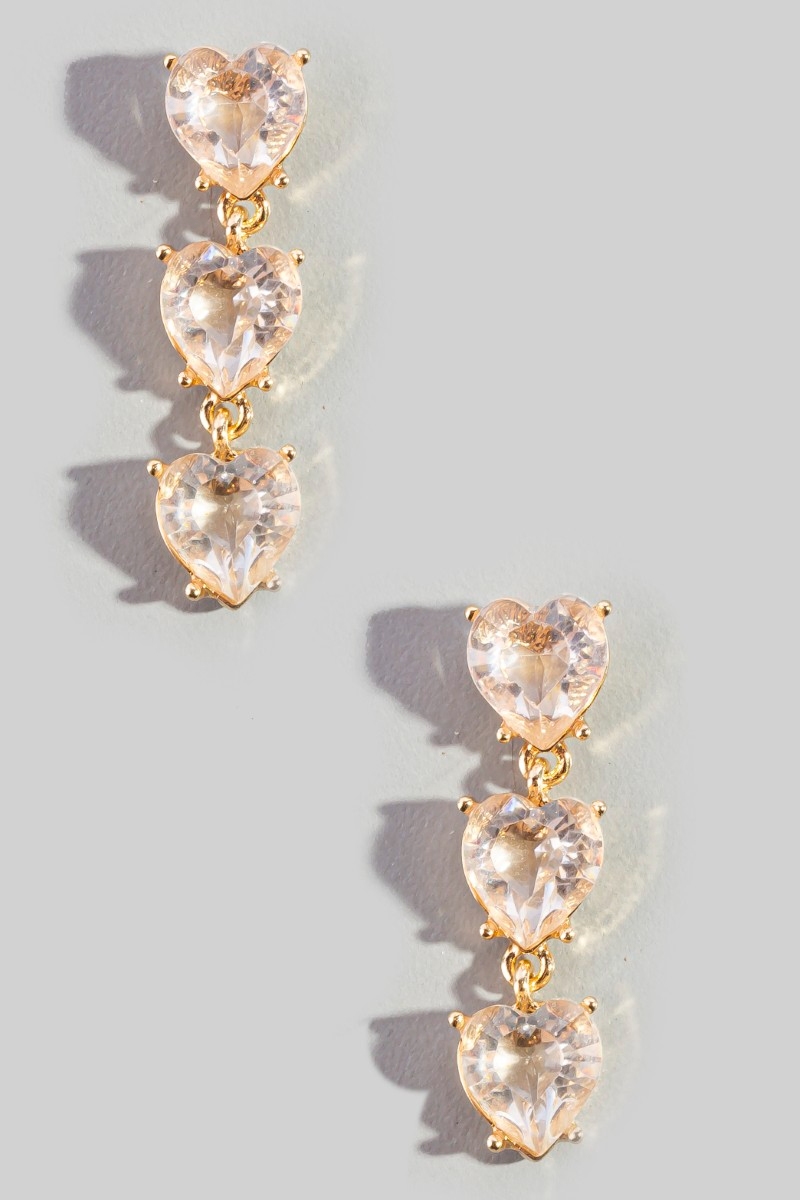 - This pair of drop earrings introduces a stunning layered crystal heart style. Experience a subtle blend of modernity and classic charm as this pair of drop earrings effortlessly adorns your ensemble.