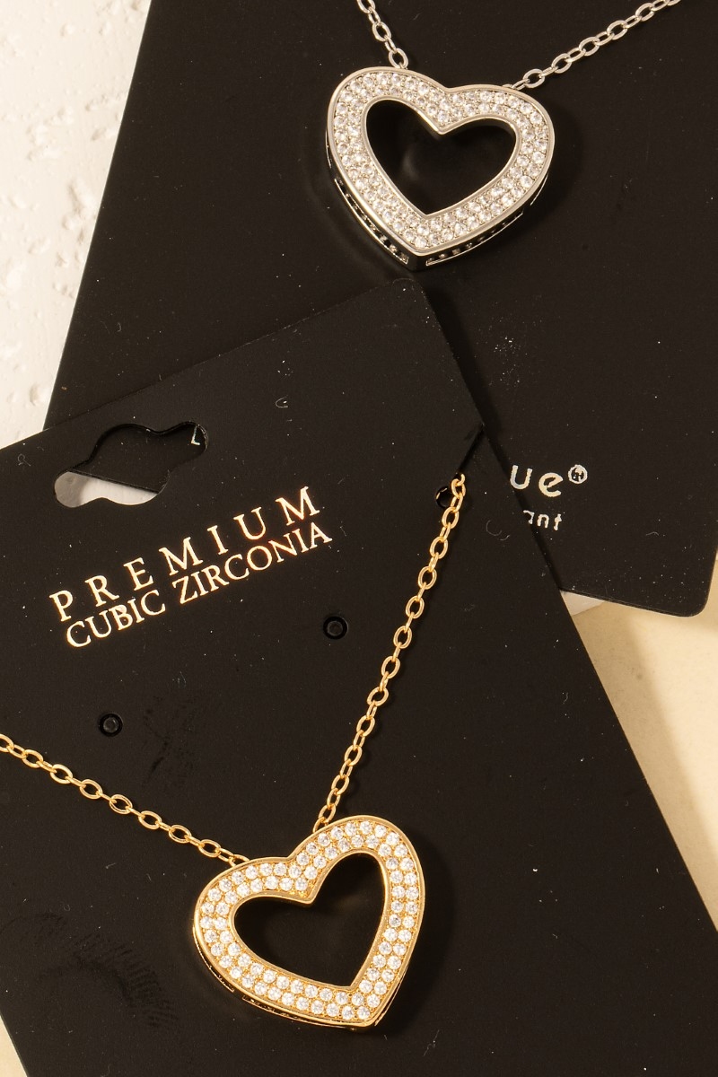 - This necklace showcases a timeless cubic zirconia pave heart pendant style. Celebrate the art of accessorizing with this piece that effortlessly encapsulates modern trends.