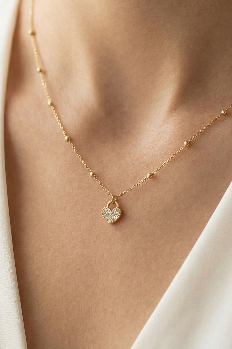 • This pendant necklace introduces a stunning cz pave heart lock style. Embark on a journey of sartorial refinement as this pendant necklace effortlessly complements your fashion sense.