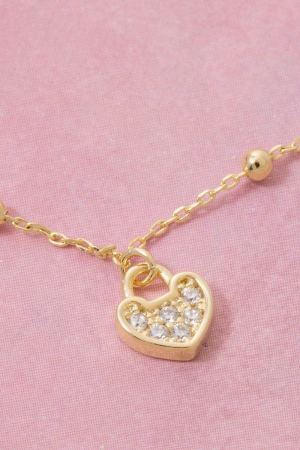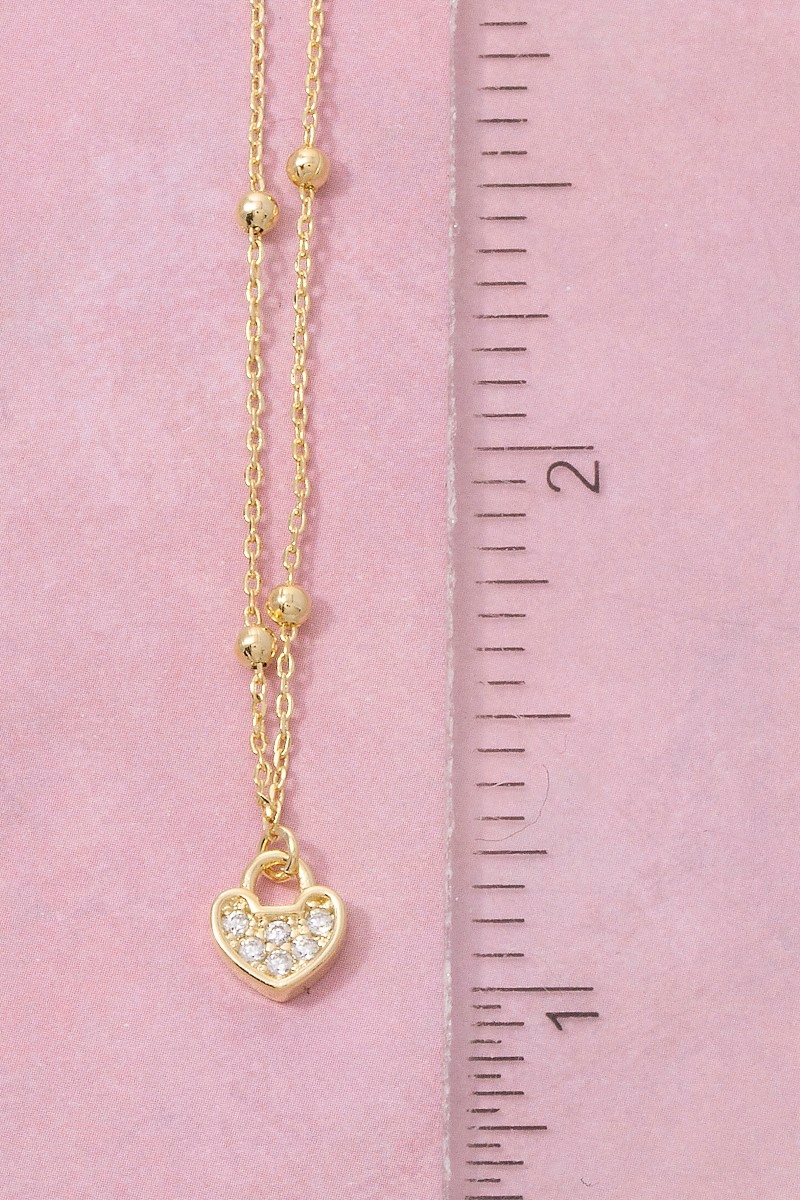 Gold Dipped Cz Studded Heart Pendant Necklace