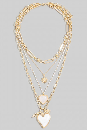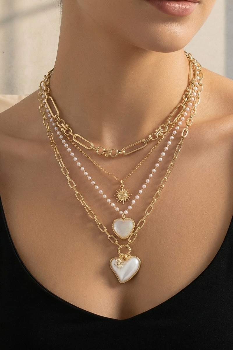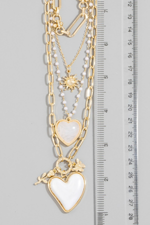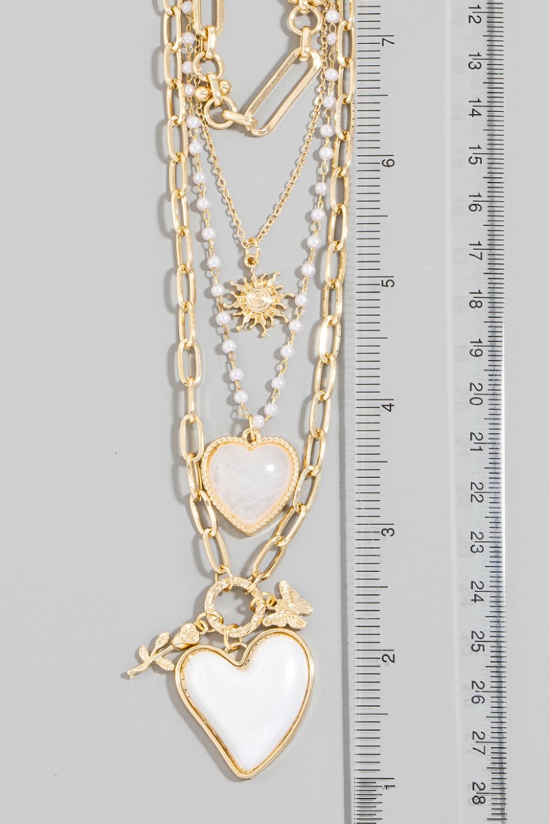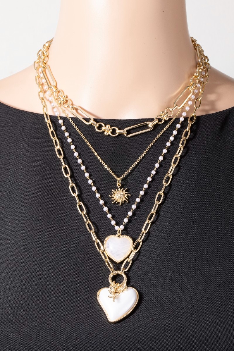 - This pendant necklace displays a vibrant double heart pendants layered chains necklace style. Experience refined sophistication with this understated yet stylish piece.