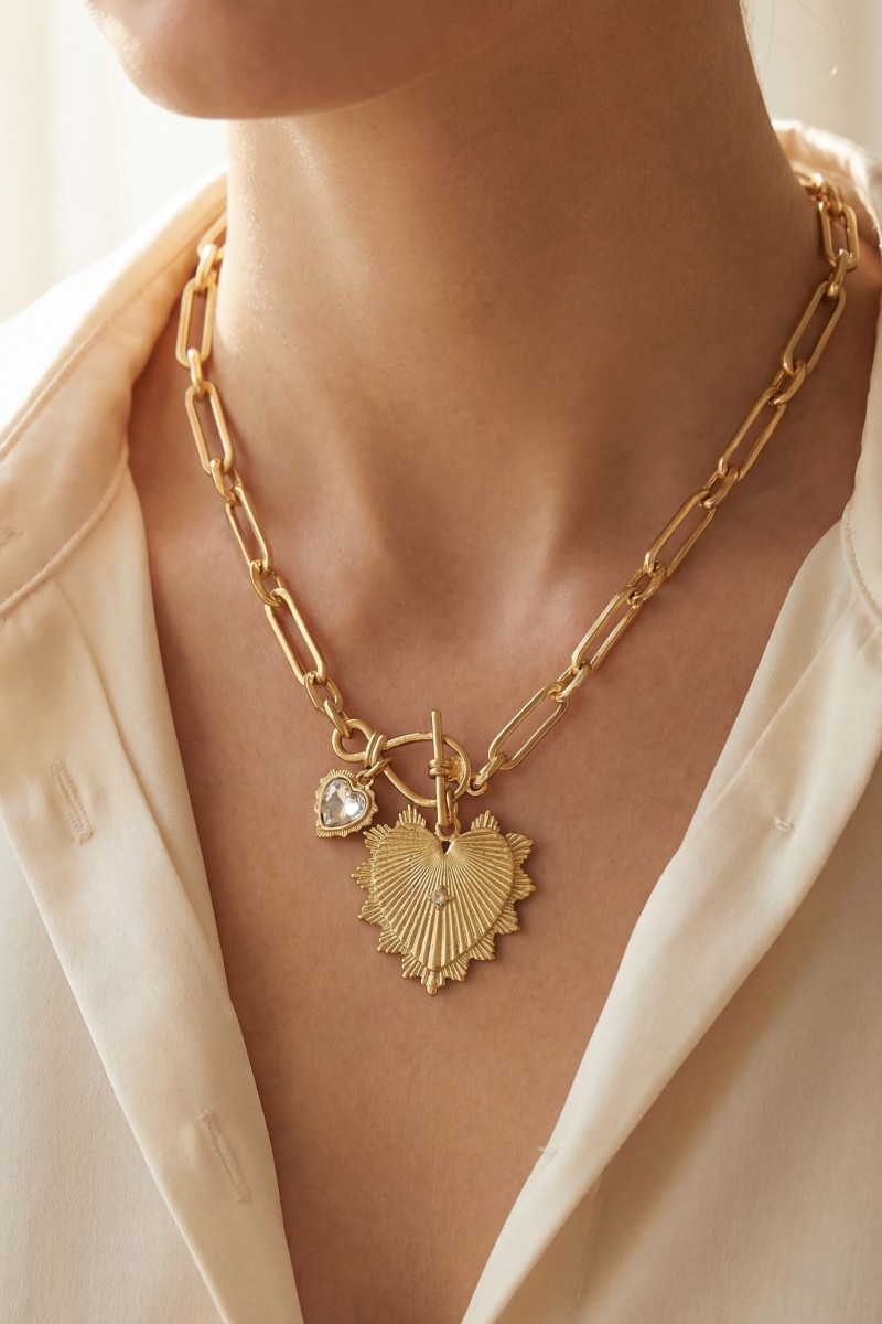 - This chain necklace introduces a stunning double heart pendants oval style. Witness the transformative power of accessories as this piece effortlessly redefines your fashion narrative.