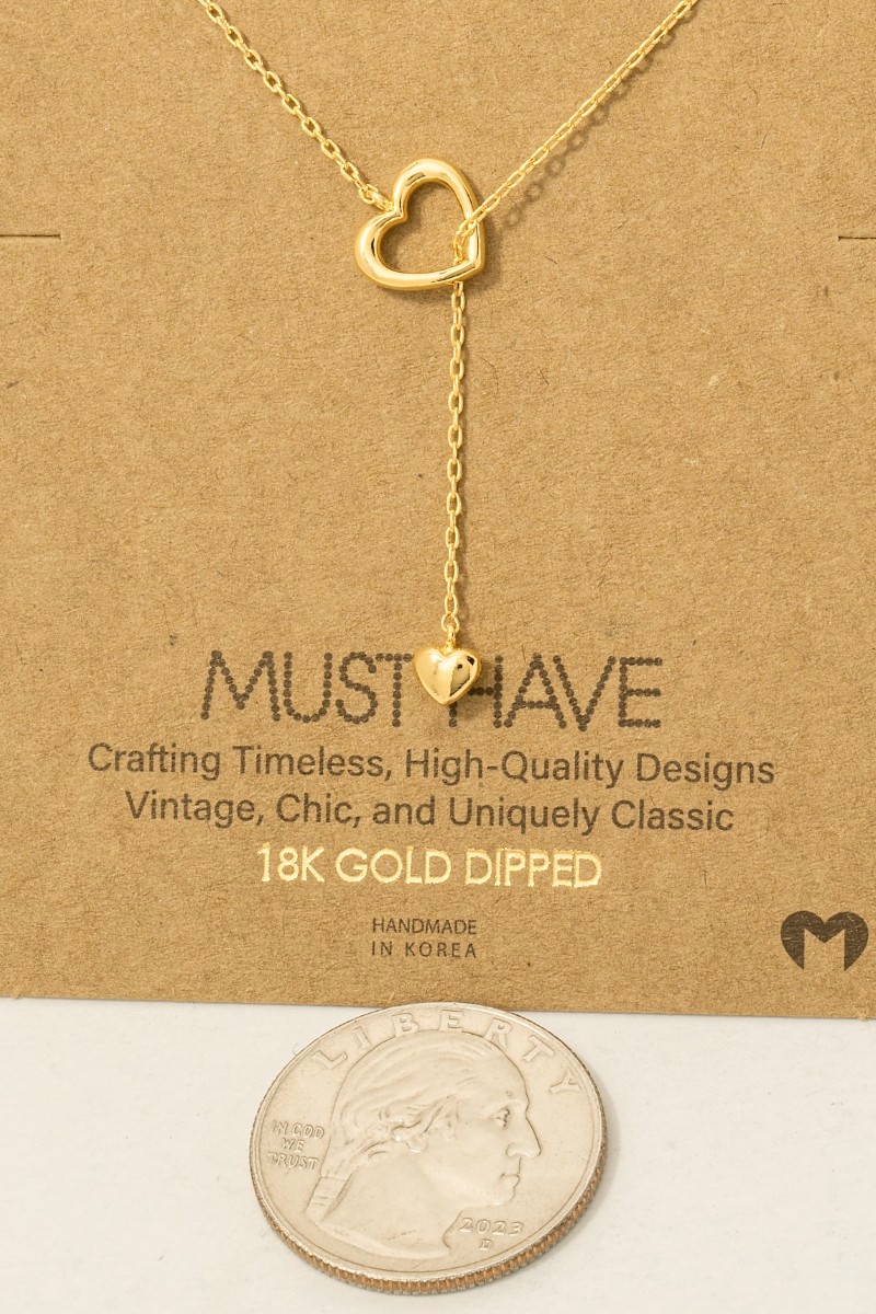 • This trending necklace brings a luxurious gold dipped dainty heart lariat necklace style. Witness the transformative power of accessories as this piece effortlessly redefines your fashion narrative.