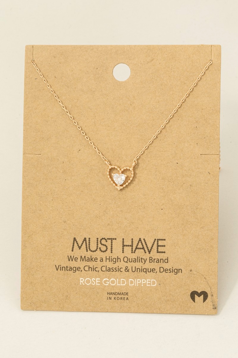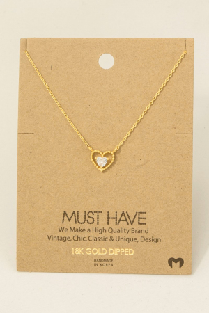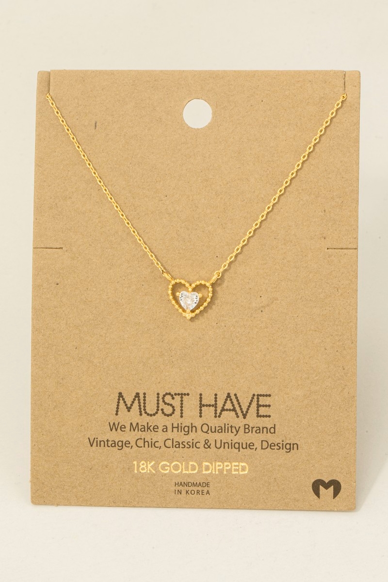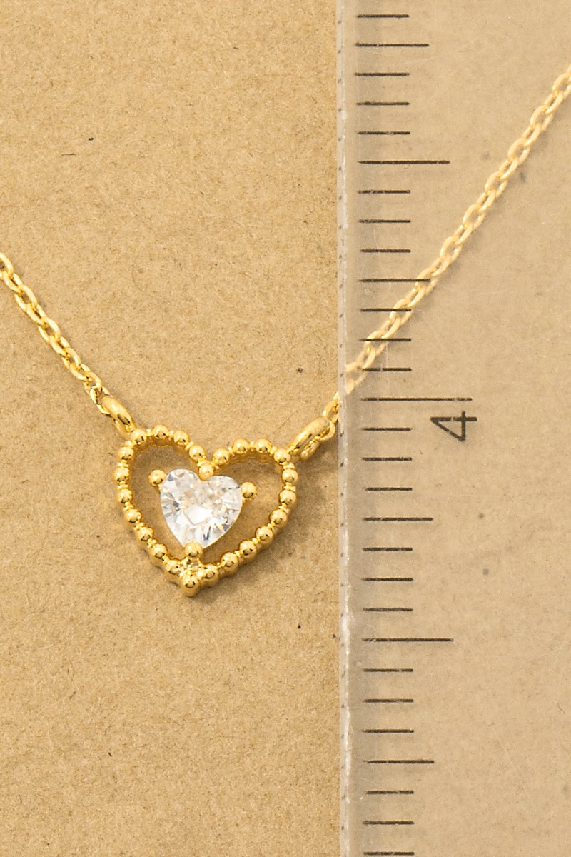Gold Dipped Cz Studded Heart Pendant Necklace