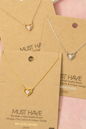 Gold Dipped Mother Of Pearl Heart Pendant Pearl Beaded Necklace