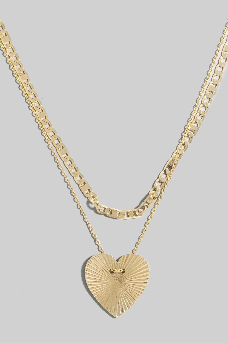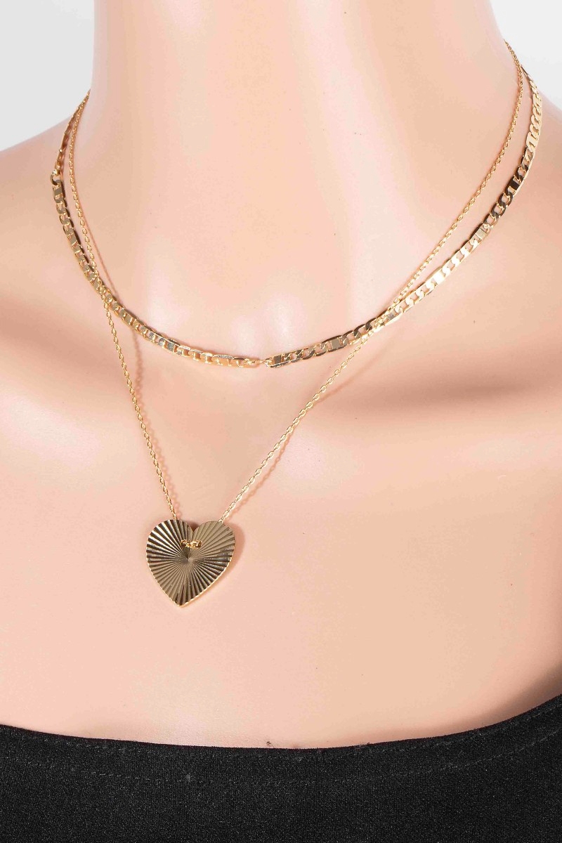 - This chain necklace showcases a unique textured heart pendant dainty style. Indulge in the artistry of accessorizing with this unique piece.
