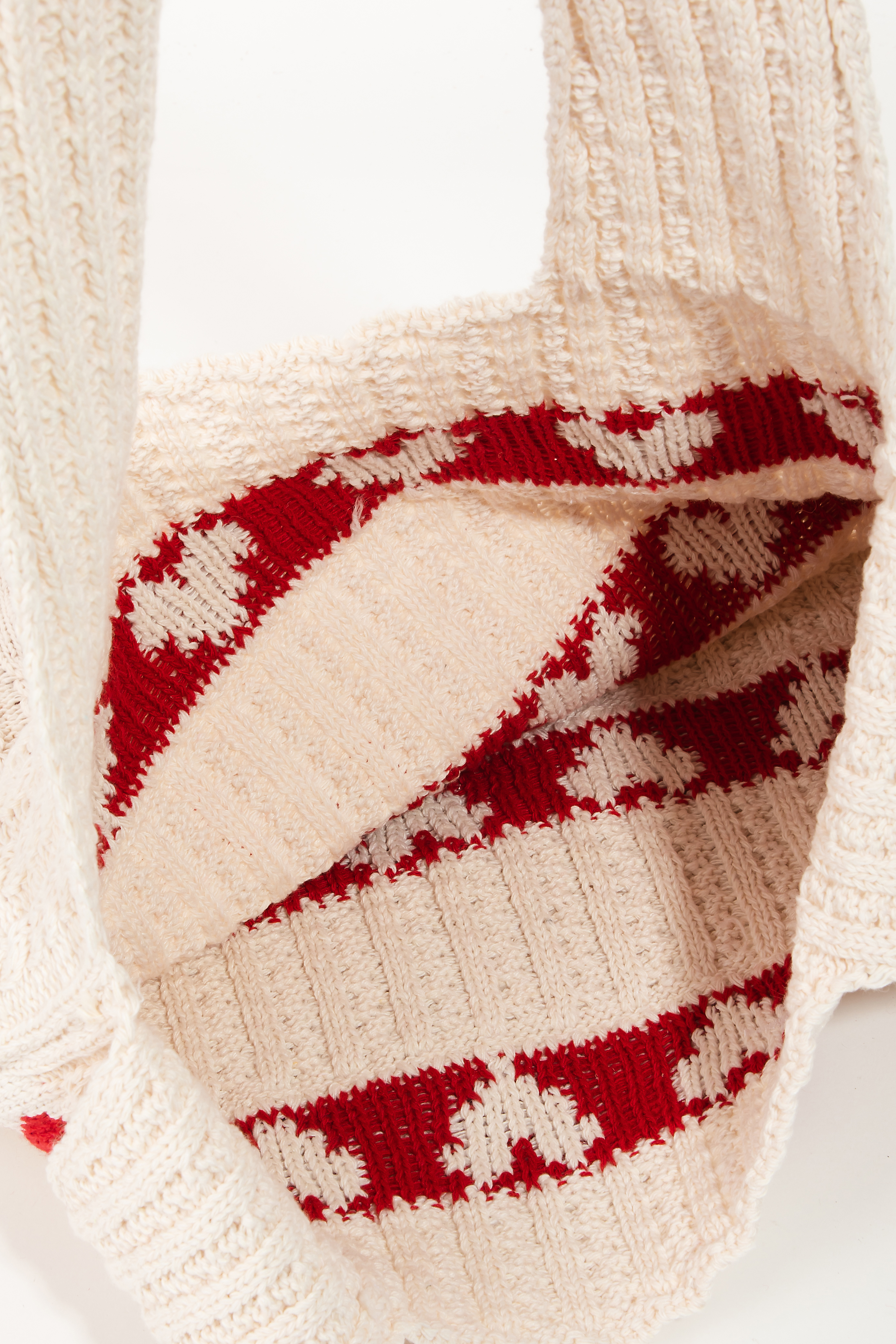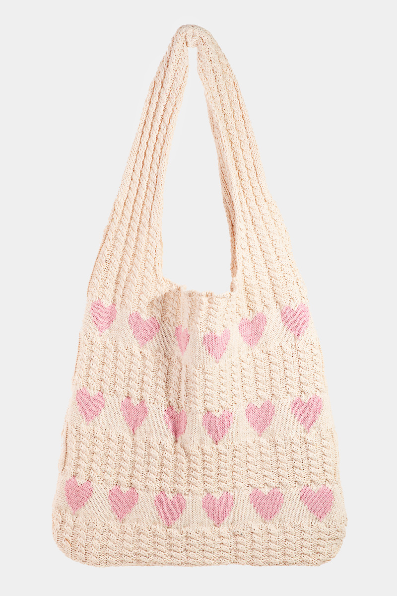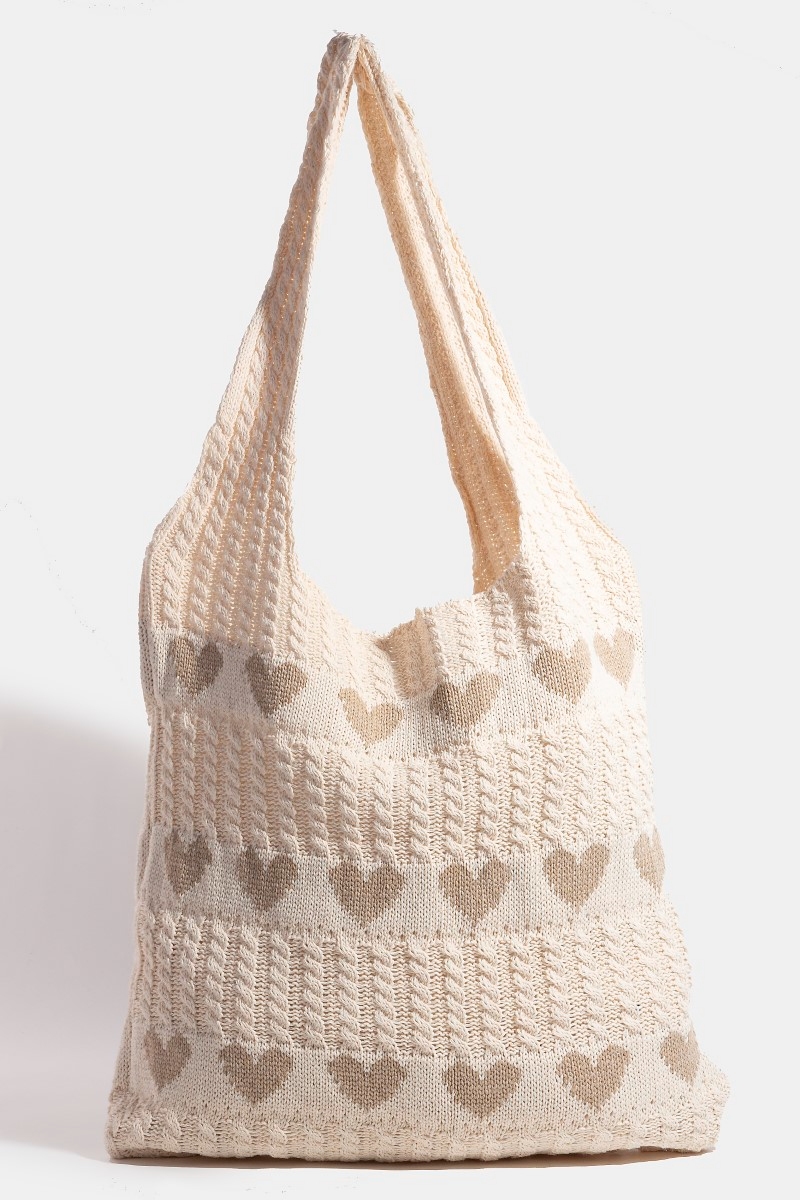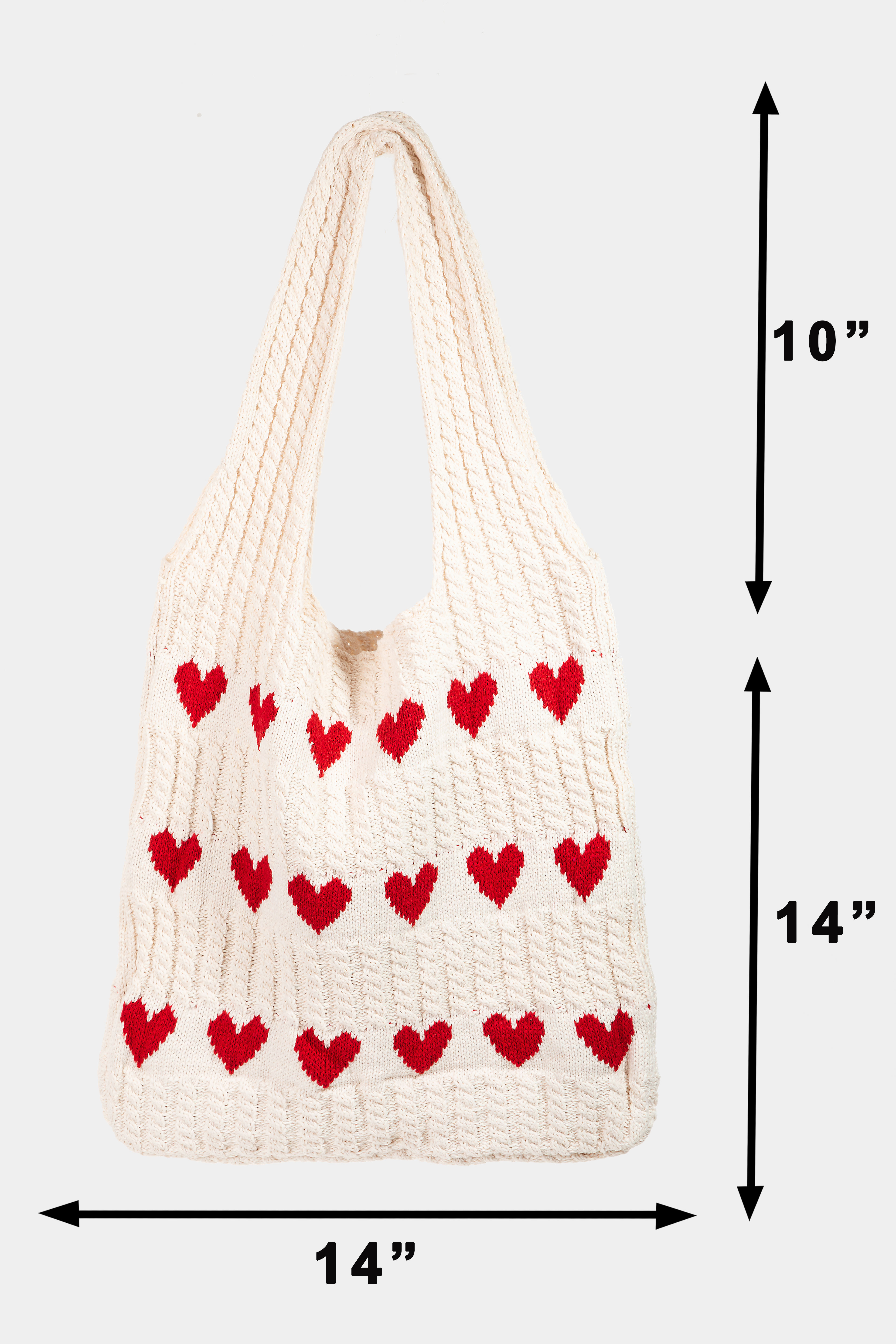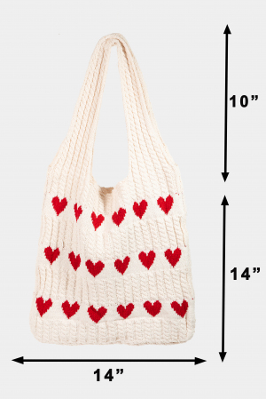 - This tote bag introduces a stunning crochet knit hearts style. Savor the allure of detailed craftsmanship in this exquisite tote bag.
