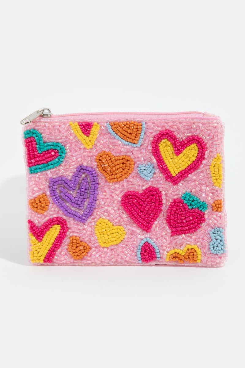 - This coin purse brings a luxurious groovy vibrant hearts seed beaded style. Delight in the intricate details that make this coin purse an essential element in expressing your fashion identity.