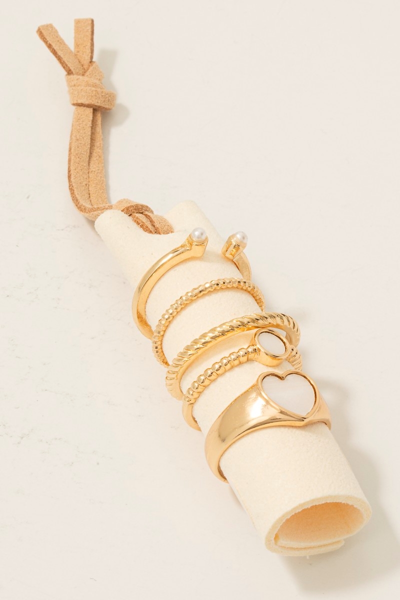 - This ring set brings a unique 5pc heart and pearl band rings set style. Discover the perfect balance of subtlety and flair as this ring set effortlessly completes your look.