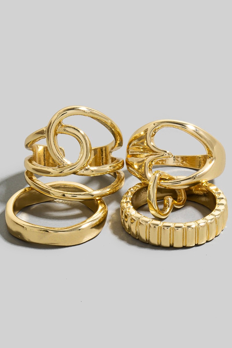 - This ring set showcases a unique assorted heart and knot style band rings set style. Step into a world of refined taste as this ring set effortlessly refines the details of your outfit.